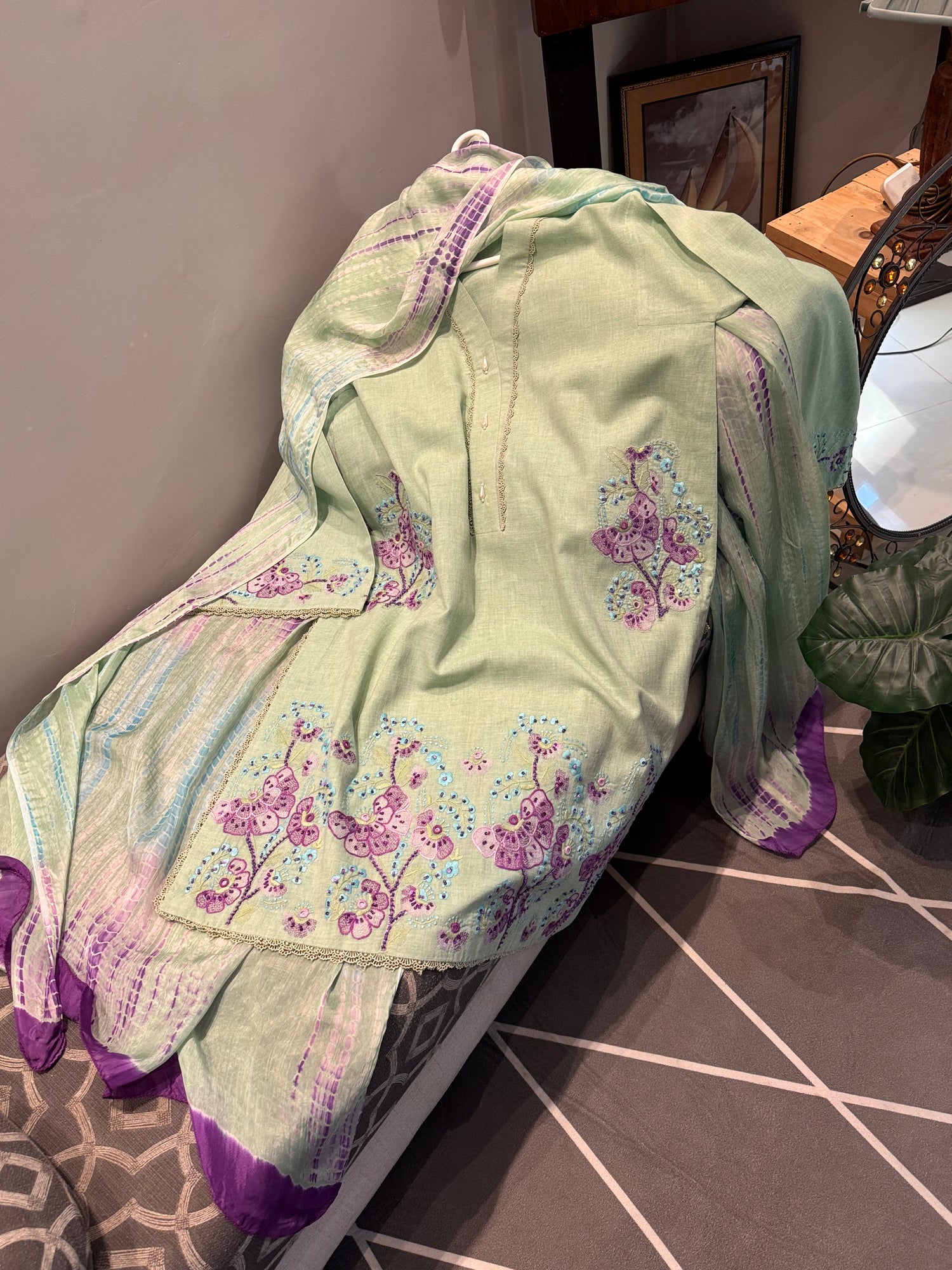 Hand embroidered on premium lawn.