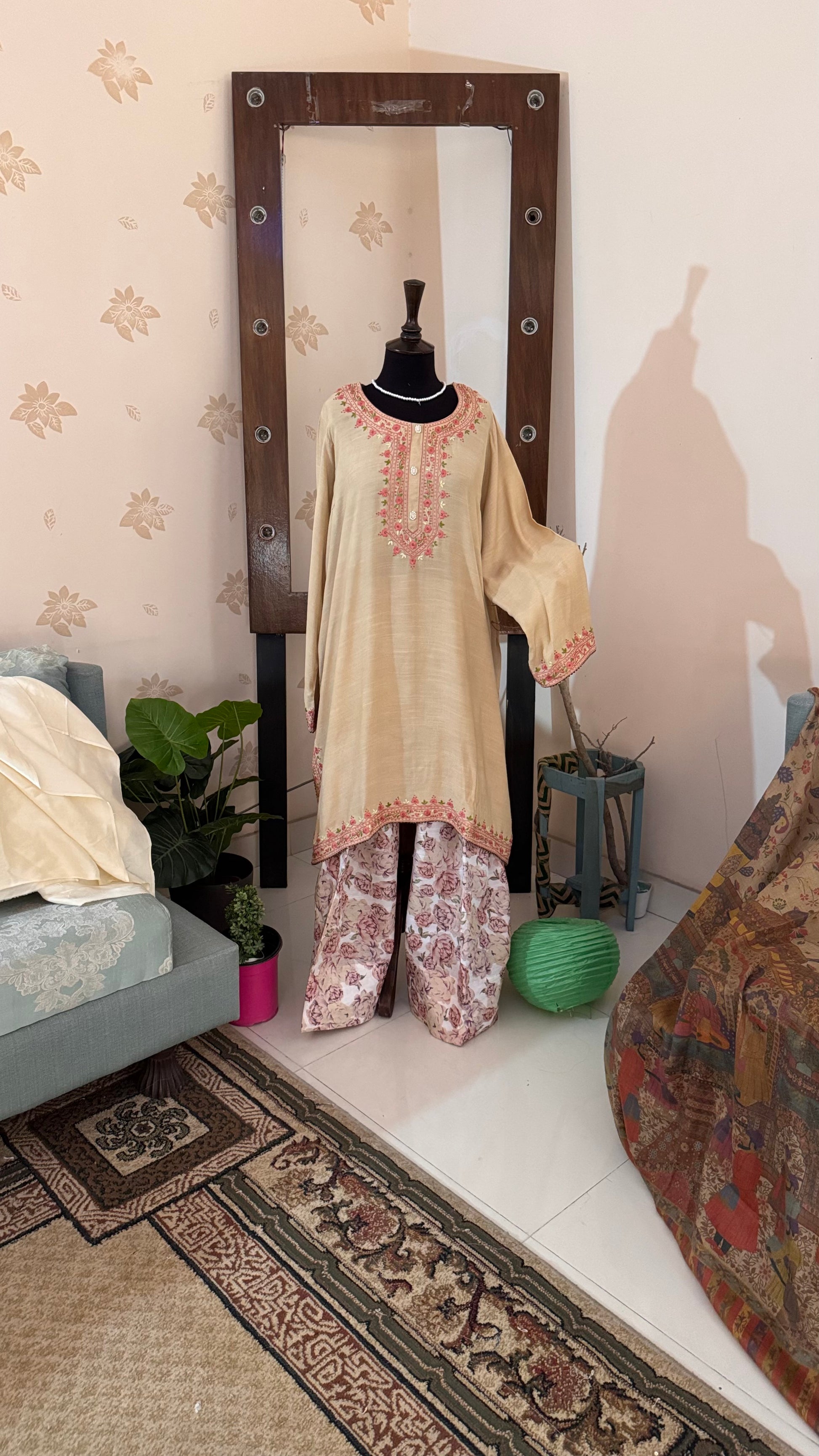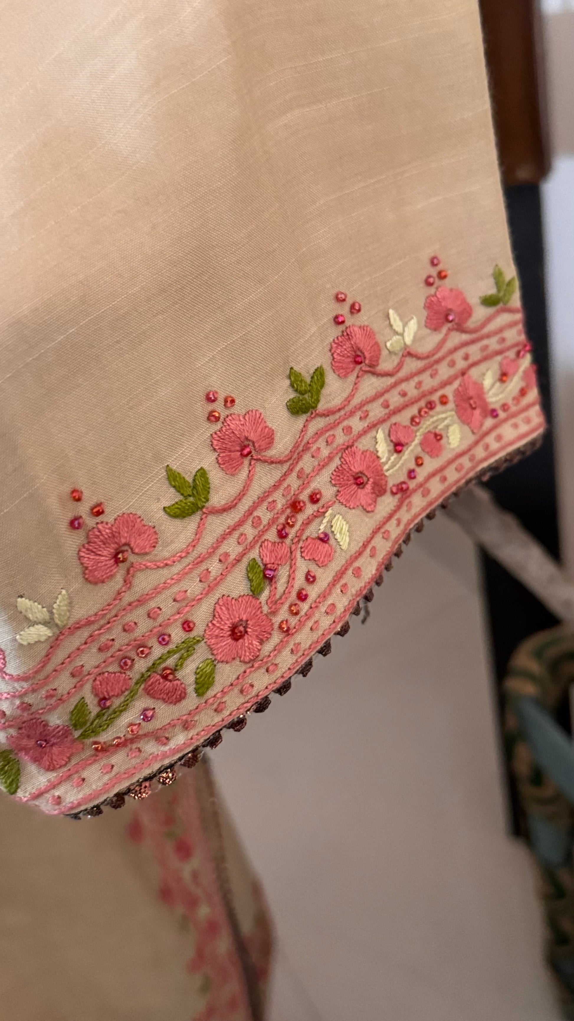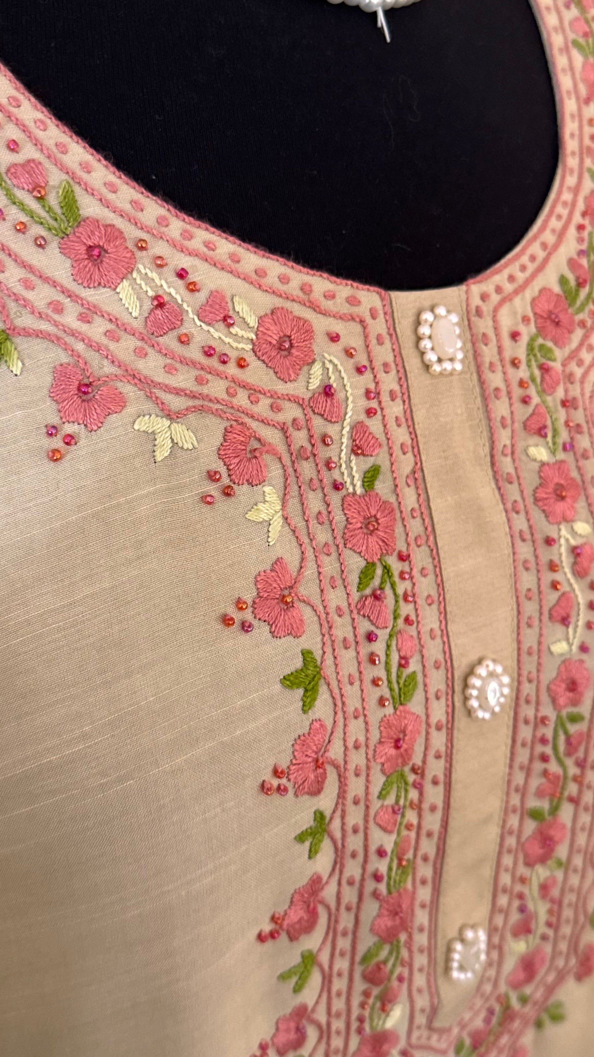 Hand Embroidered Kurta on Arabian Silk - Very Breathable fabric for summers with a pretty fall.