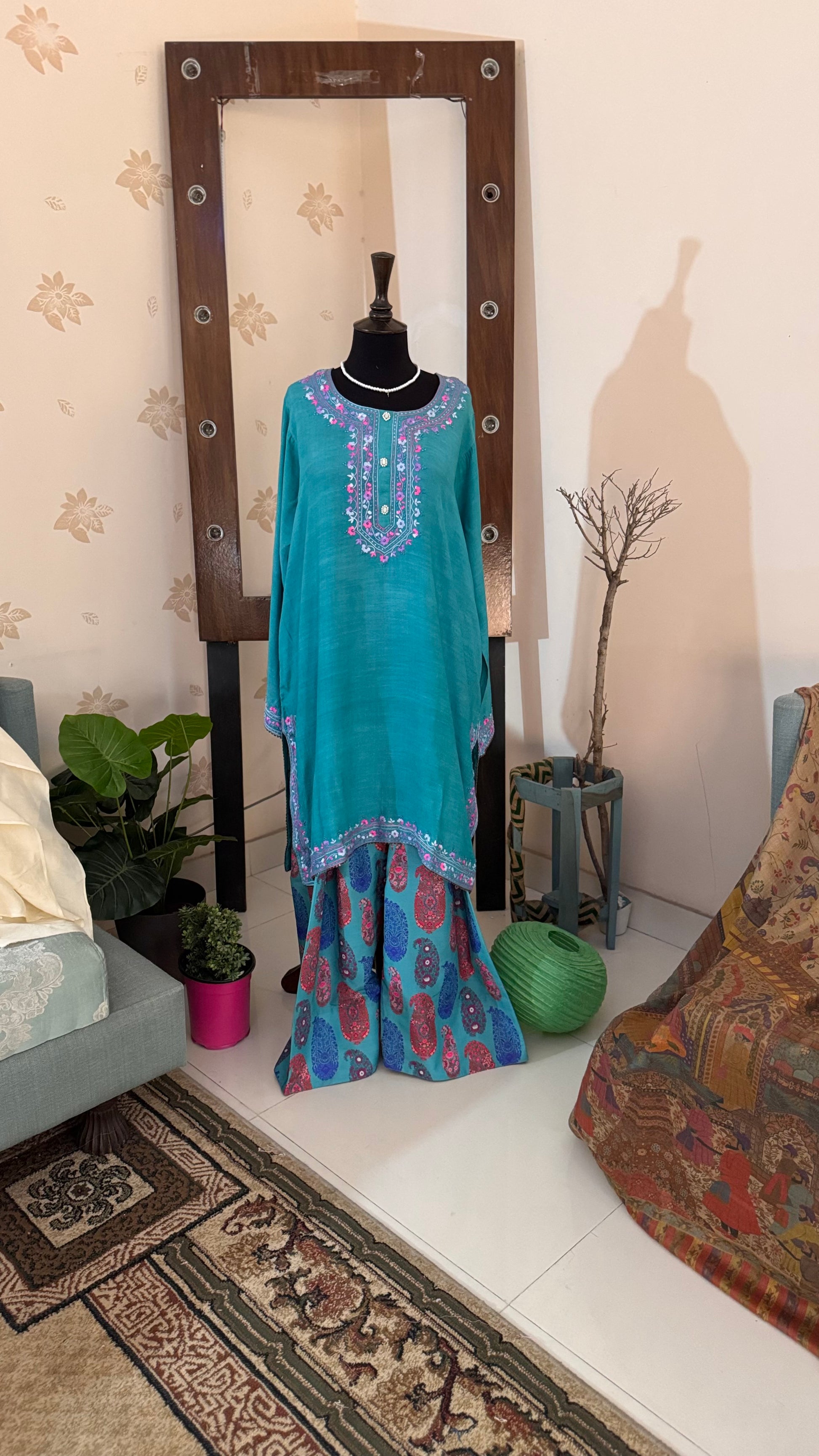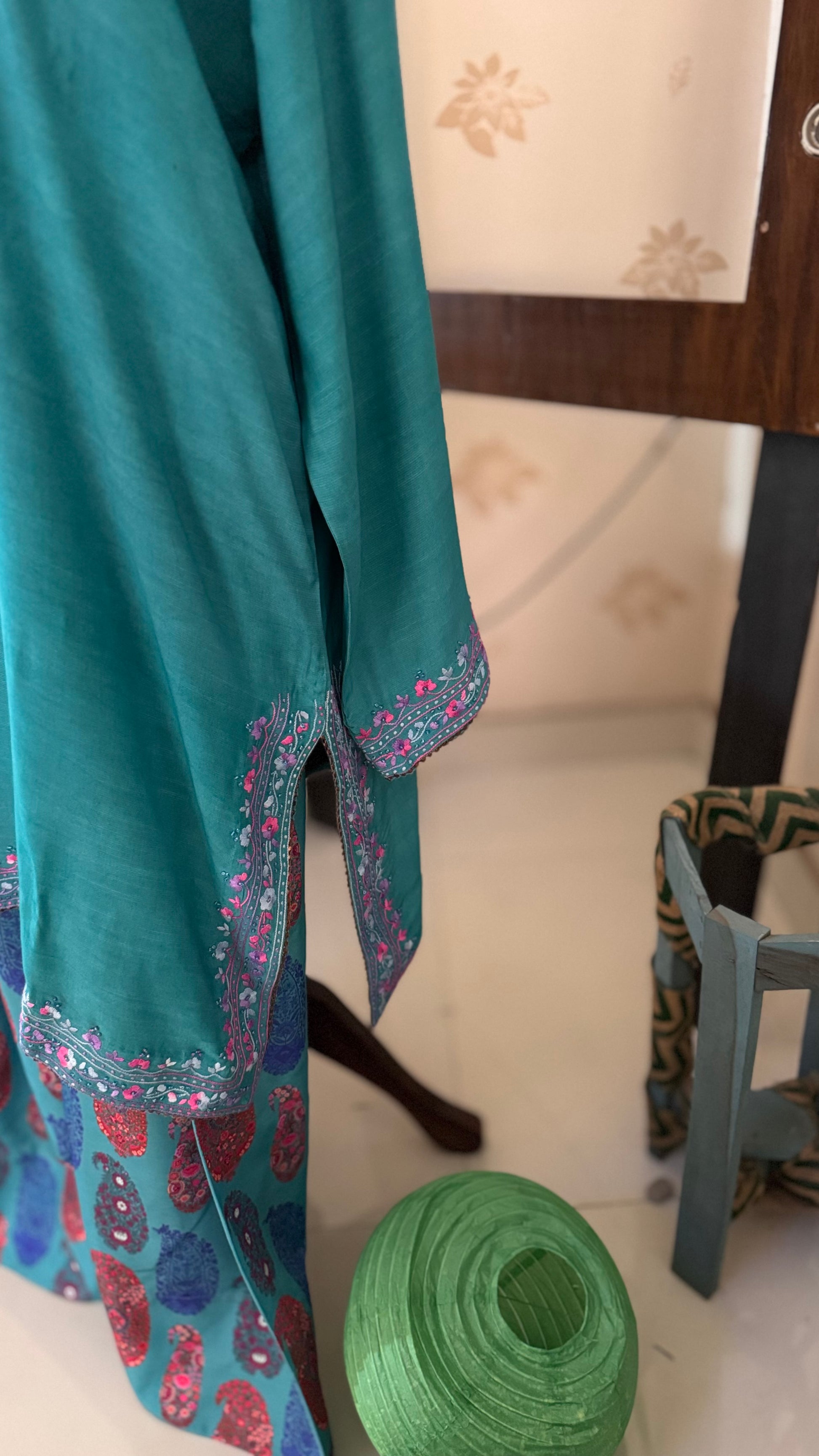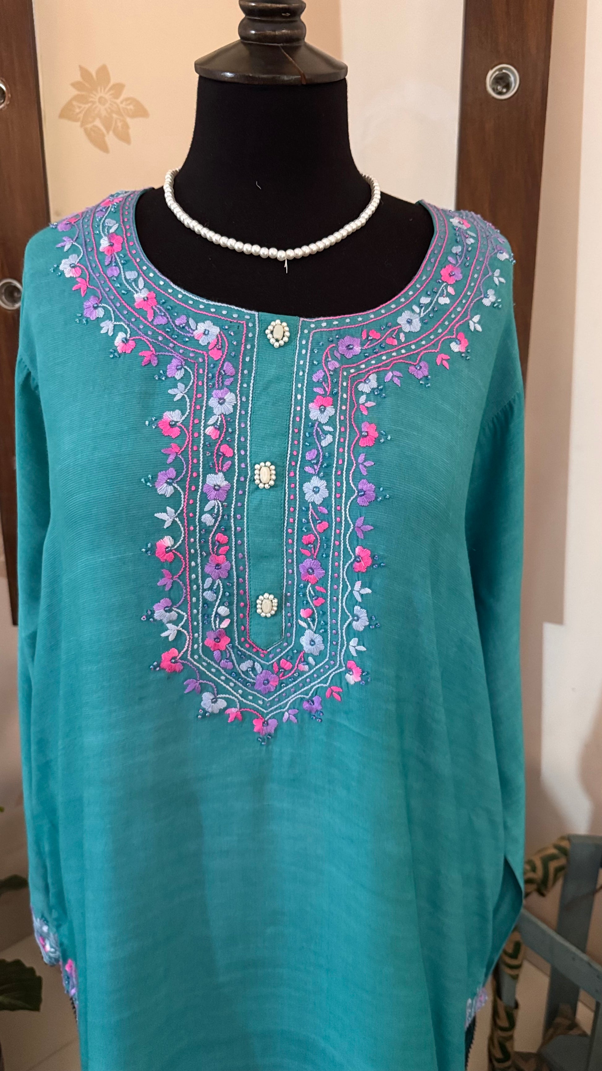 Hand Embroidered Kurta on Arabian Silk - Very Breathable fabric for summers with a pretty fall.