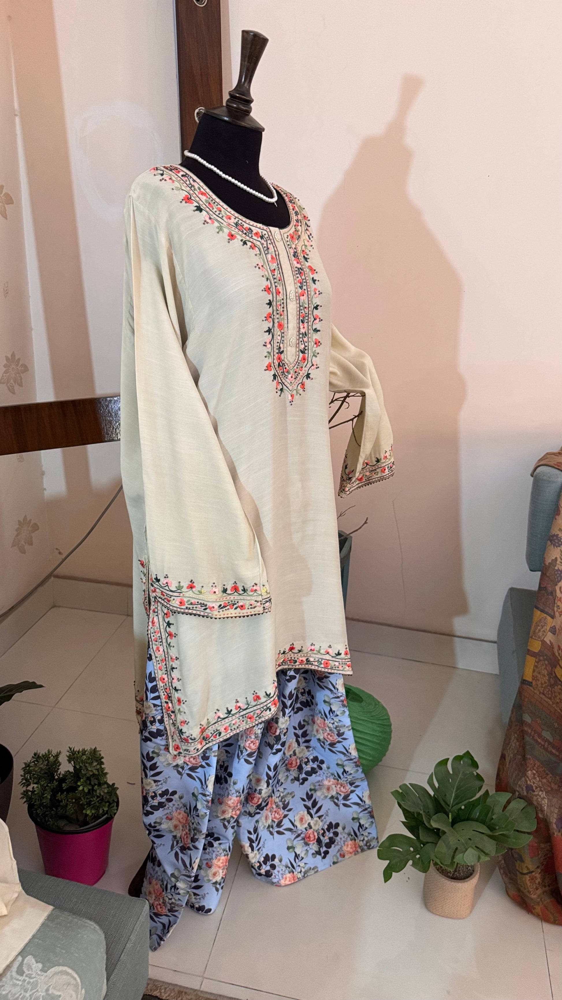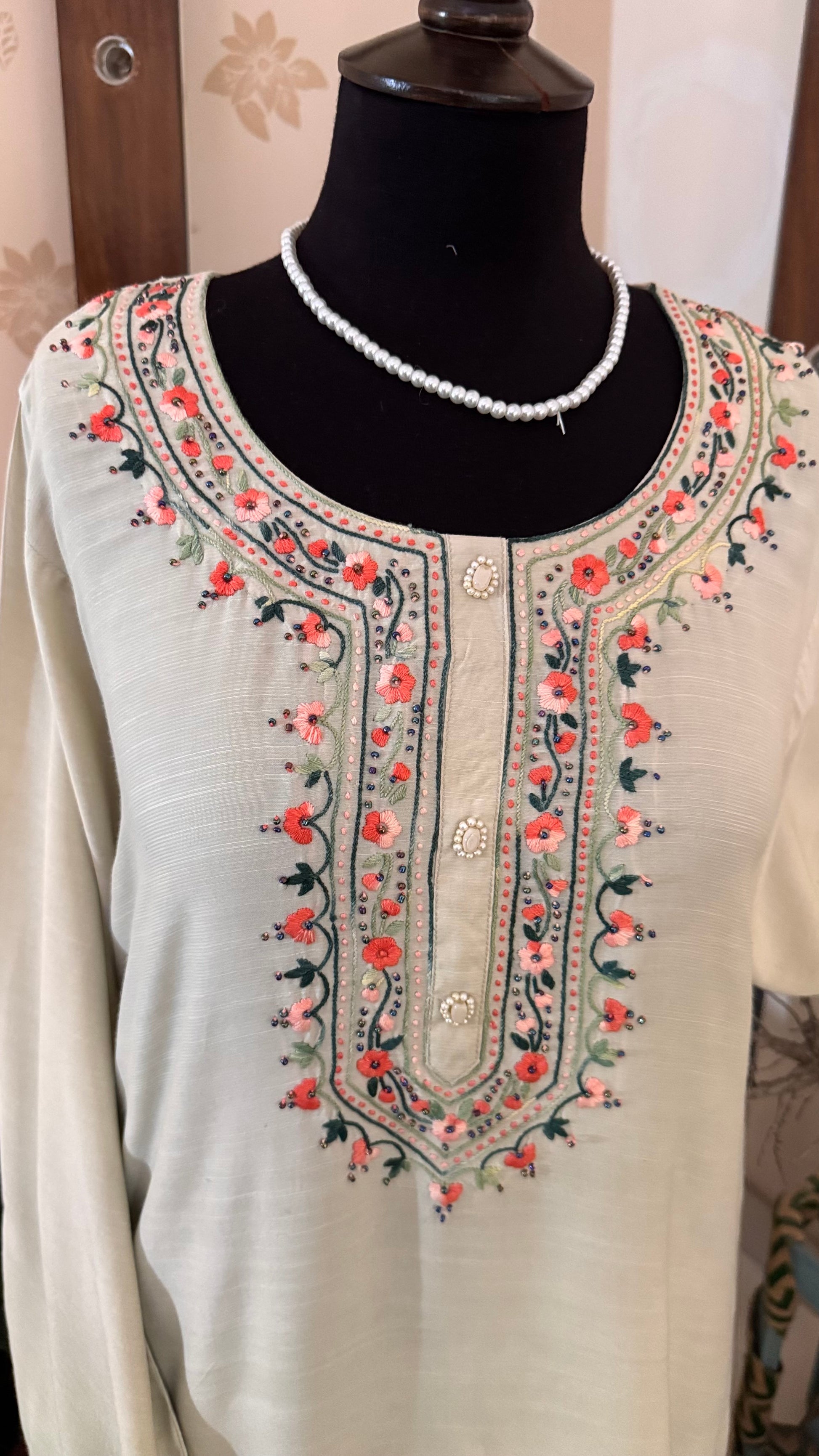 Hand Embroidered Kurta on Arabian Silk - Very Breathable fabric for summers with a pretty fall.