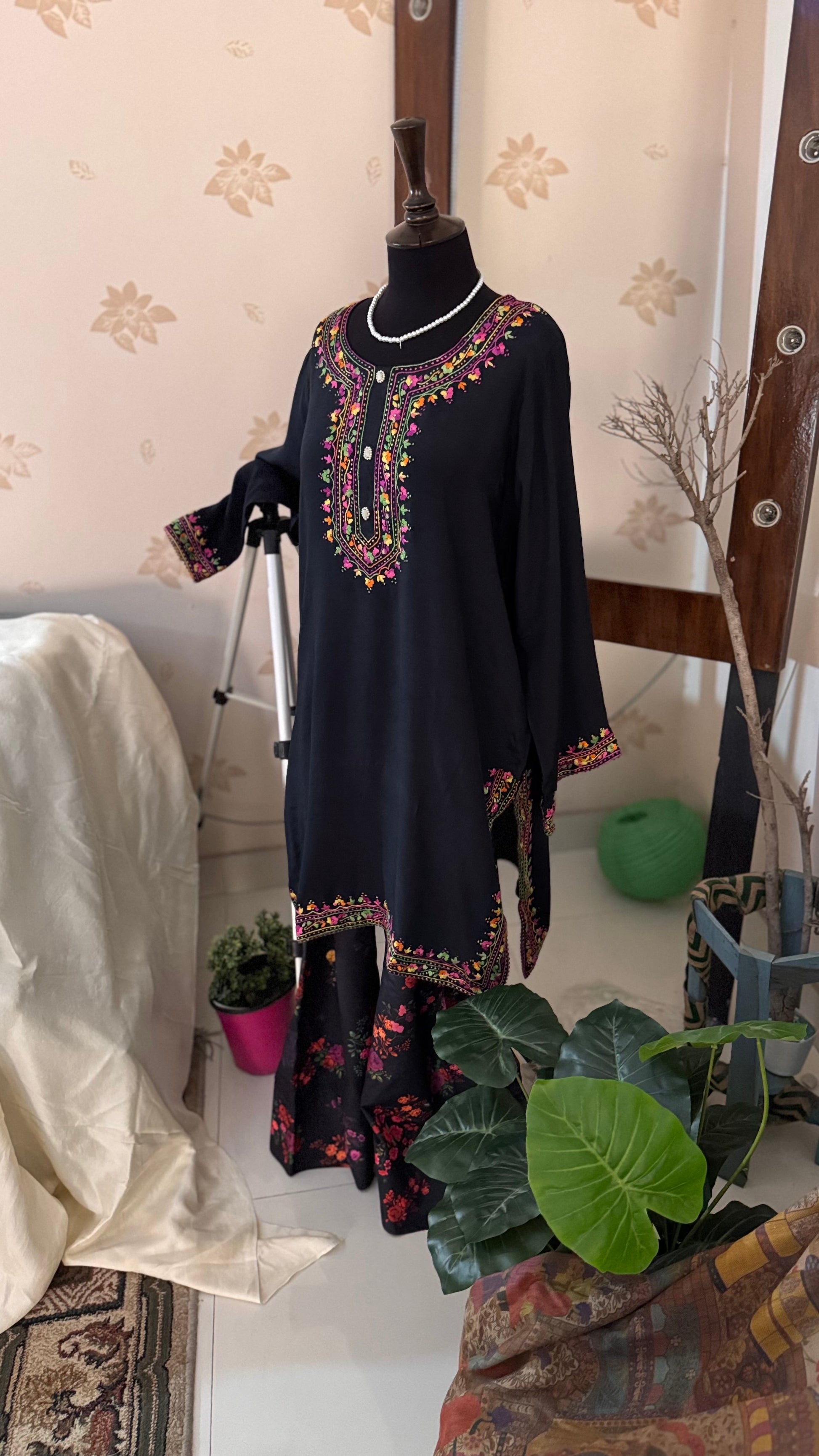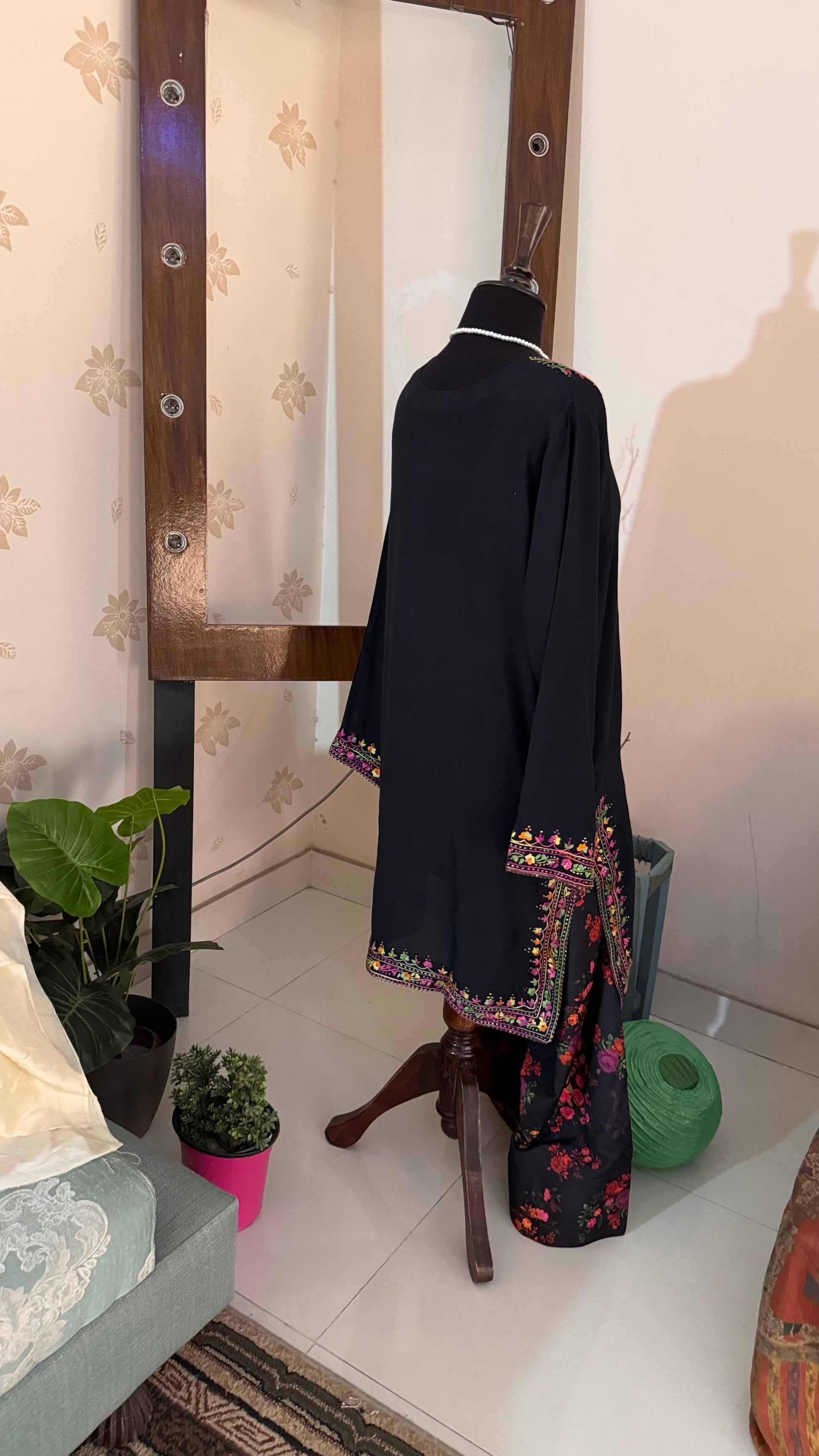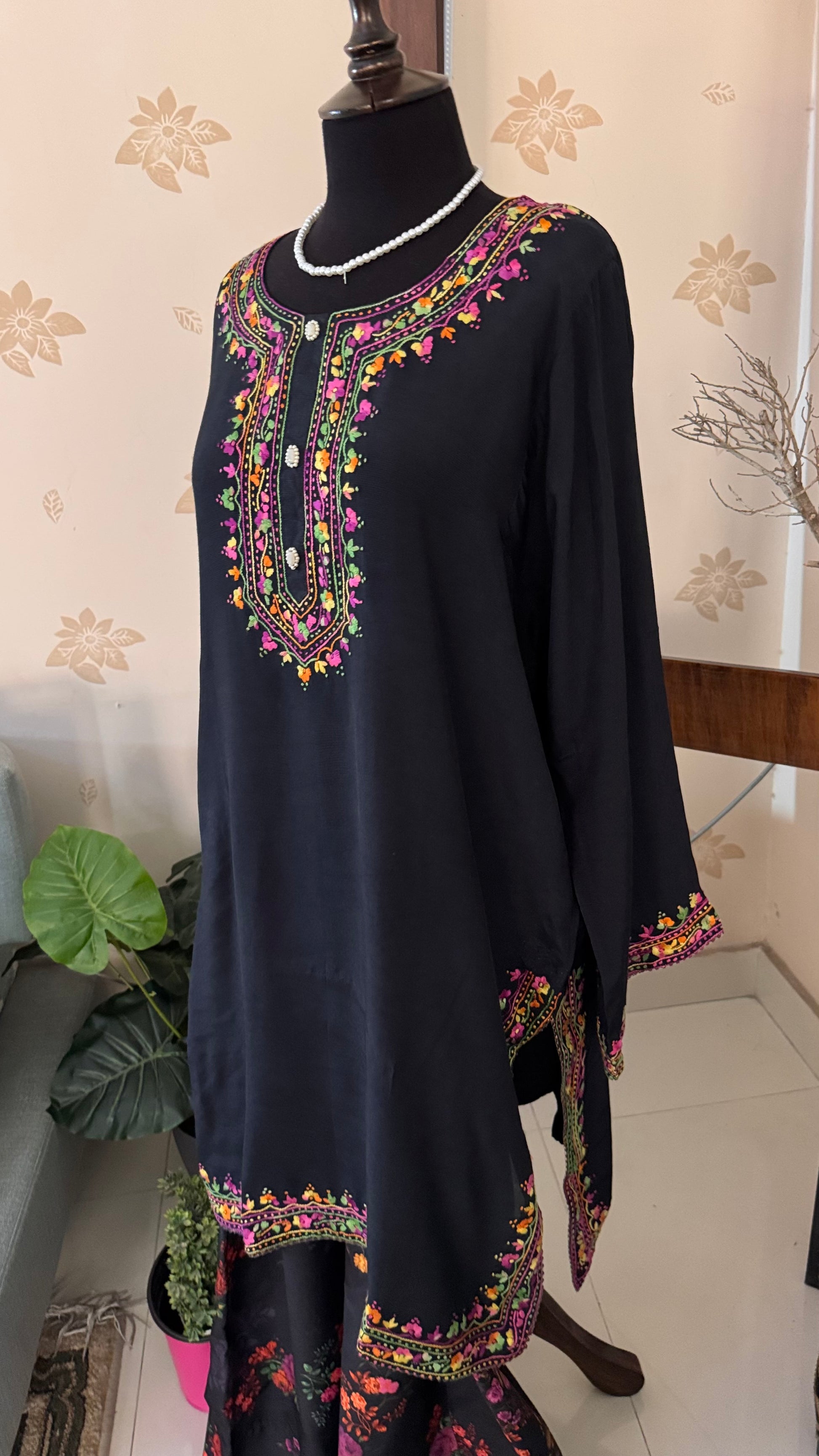 Hand Embroidered Kurta on Arabian Silk - Very Breathable fabric for summers with a pretty fall.