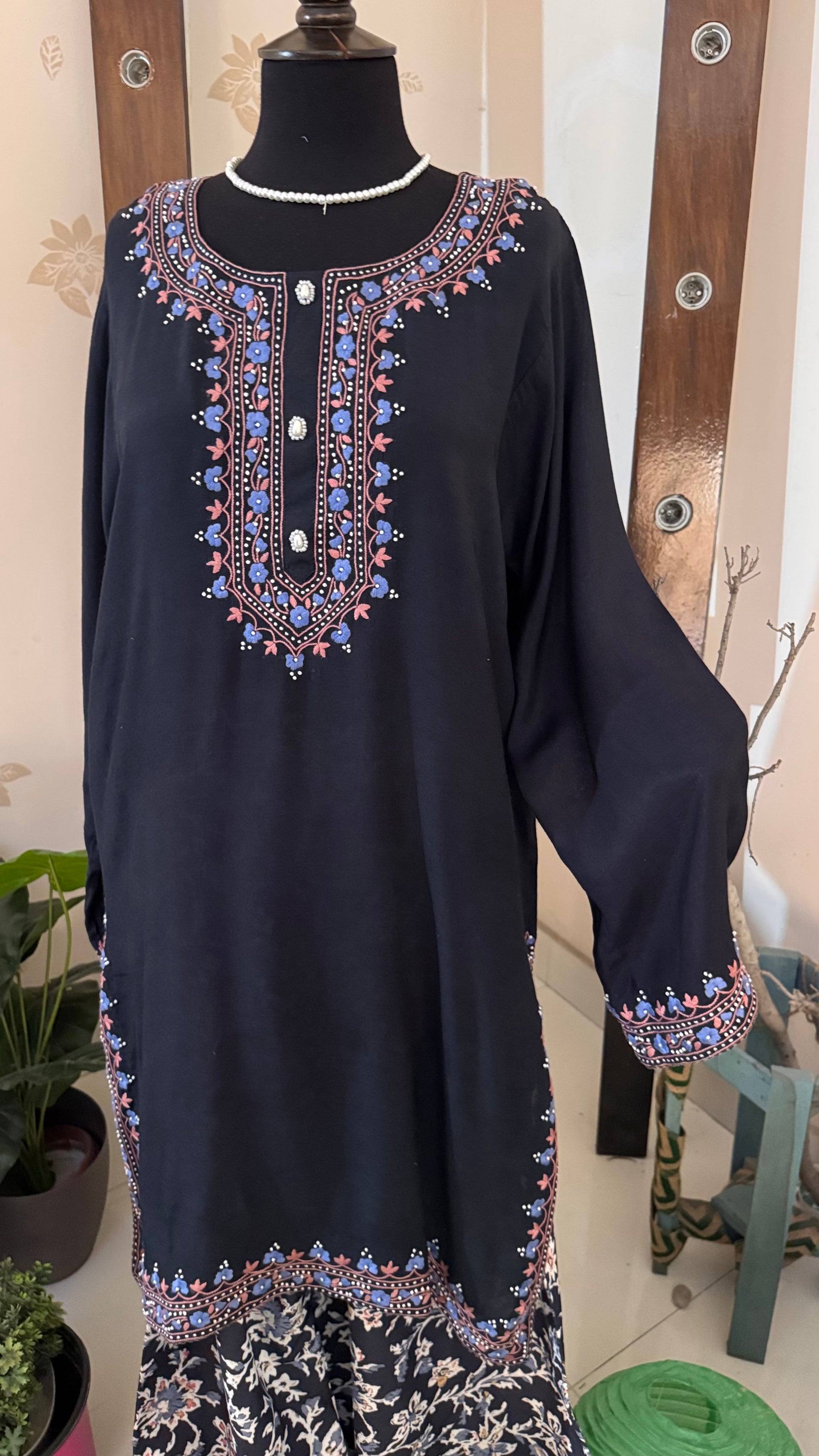 Hand Embroidered Kurta on Arabian Silk - Very Breathable fabric for summers with a pretty fall.