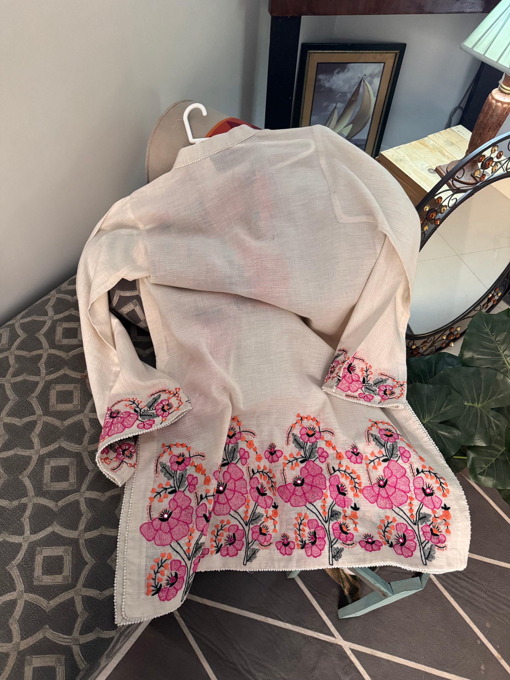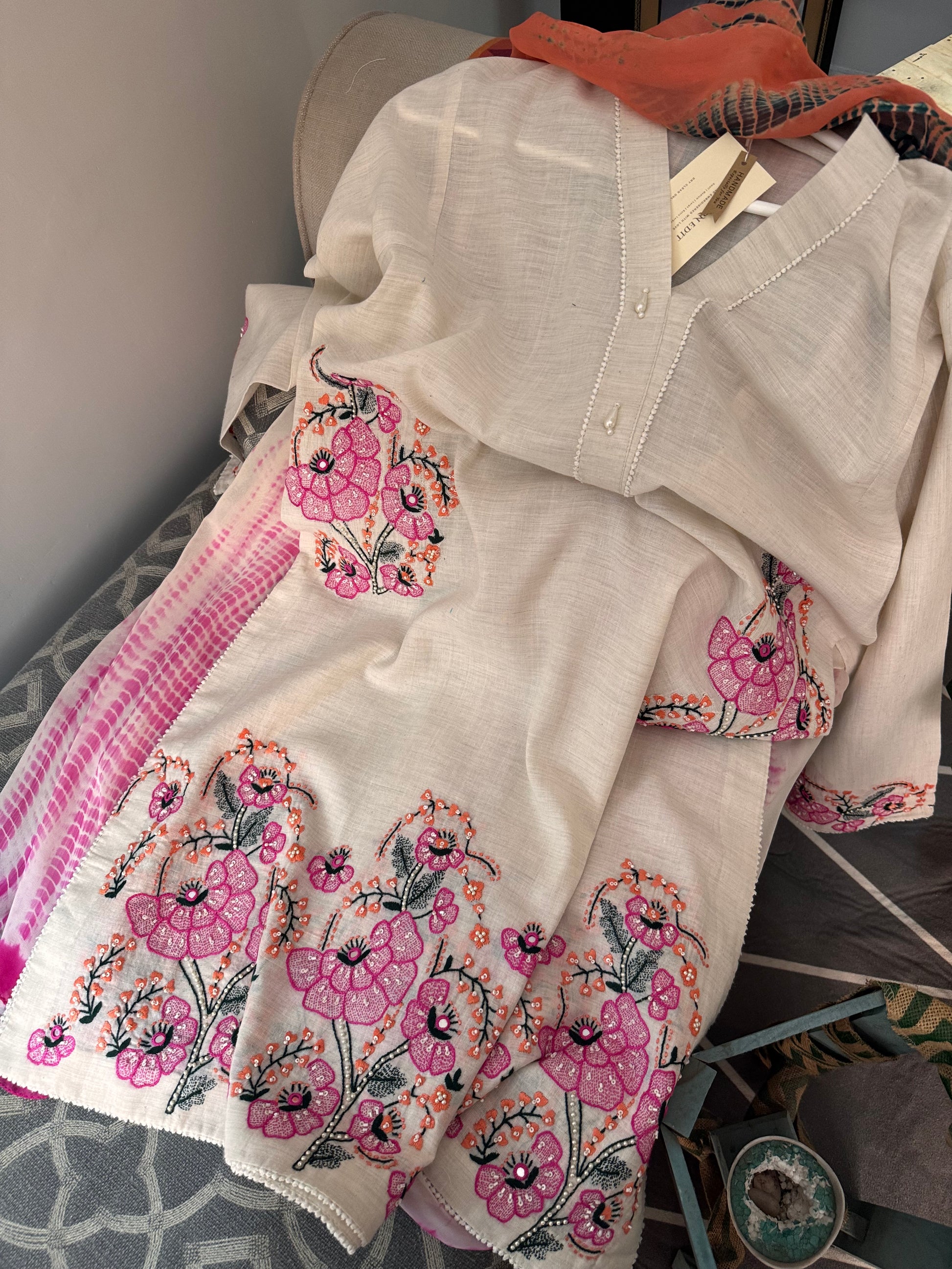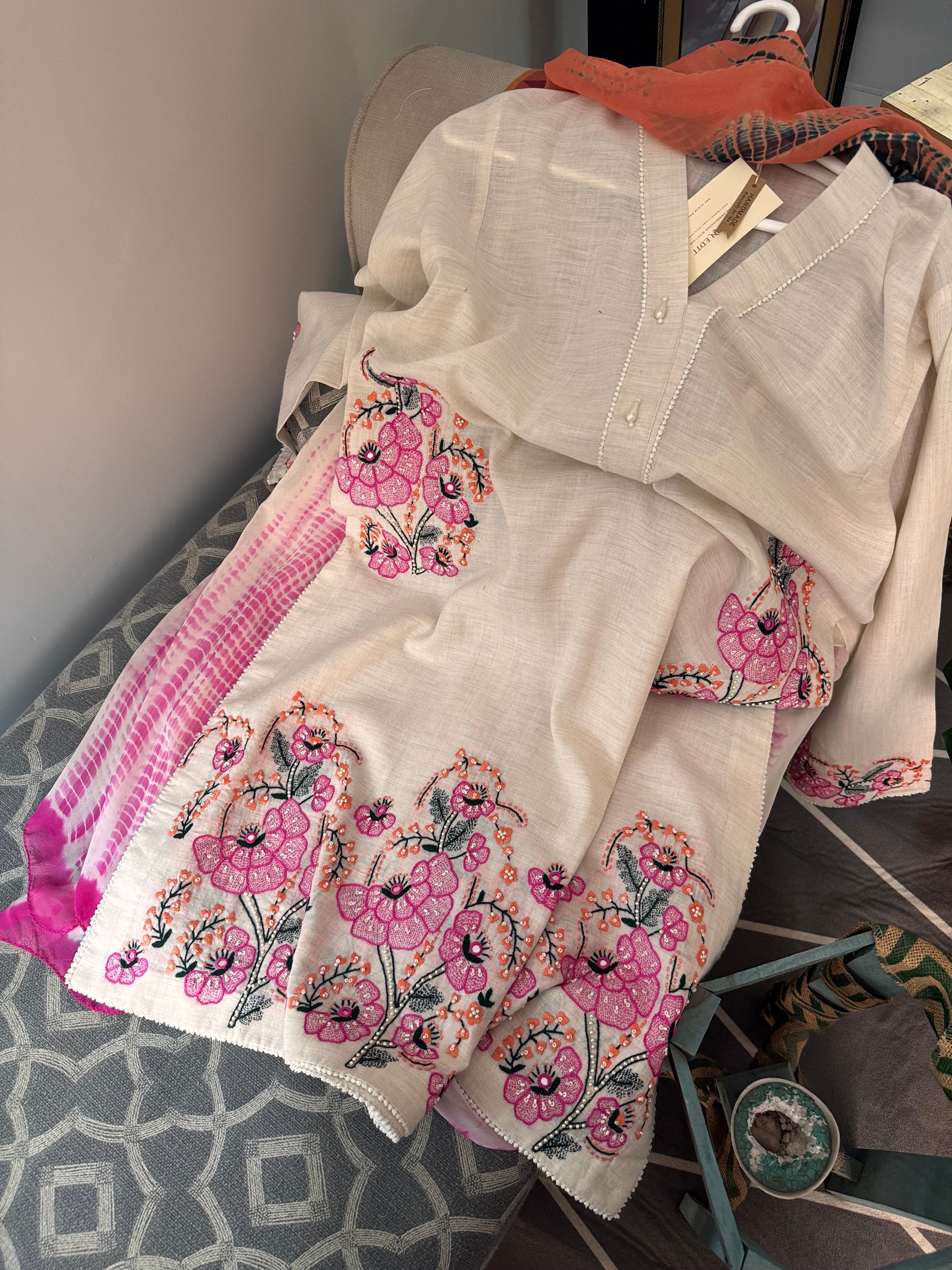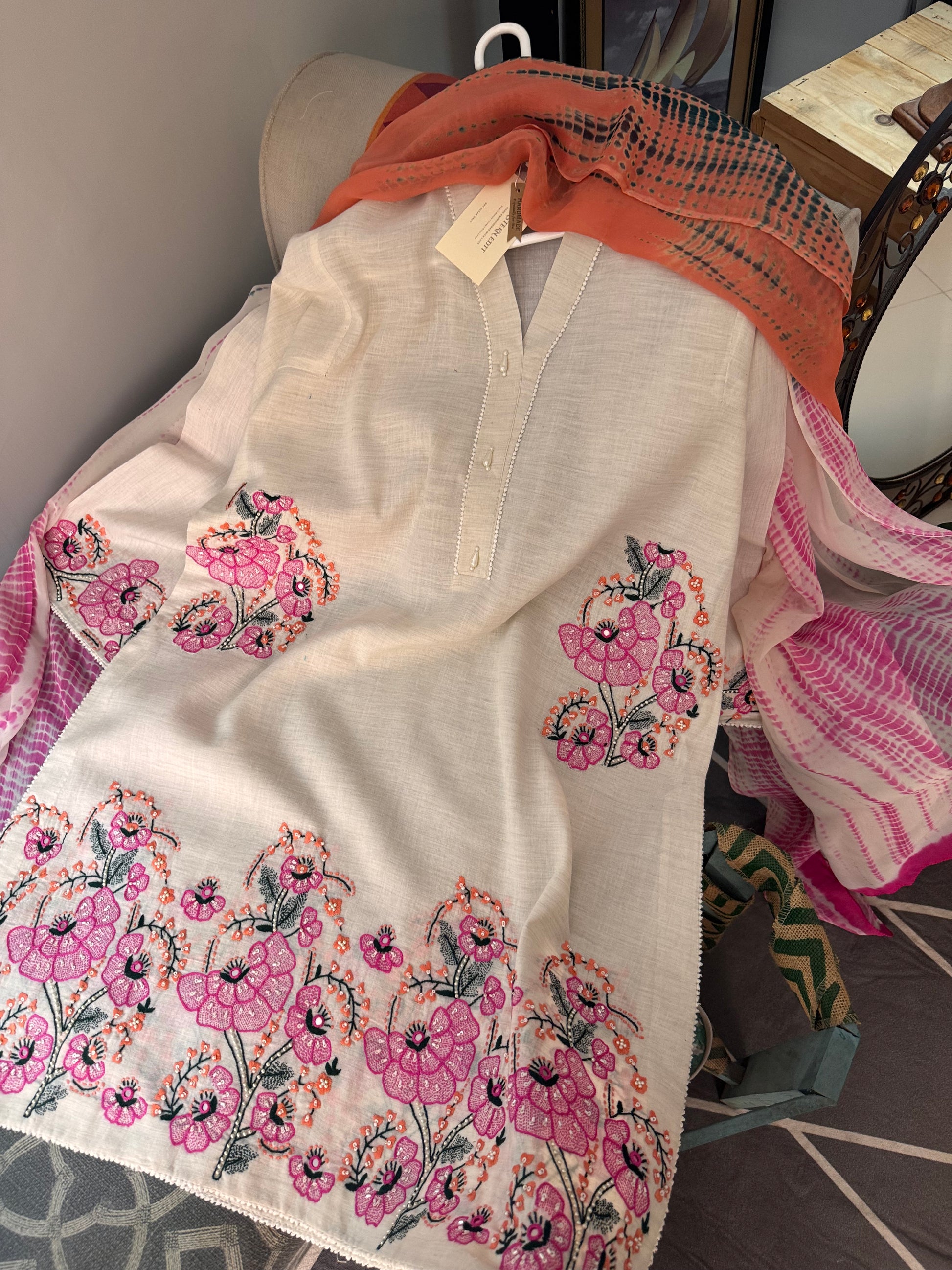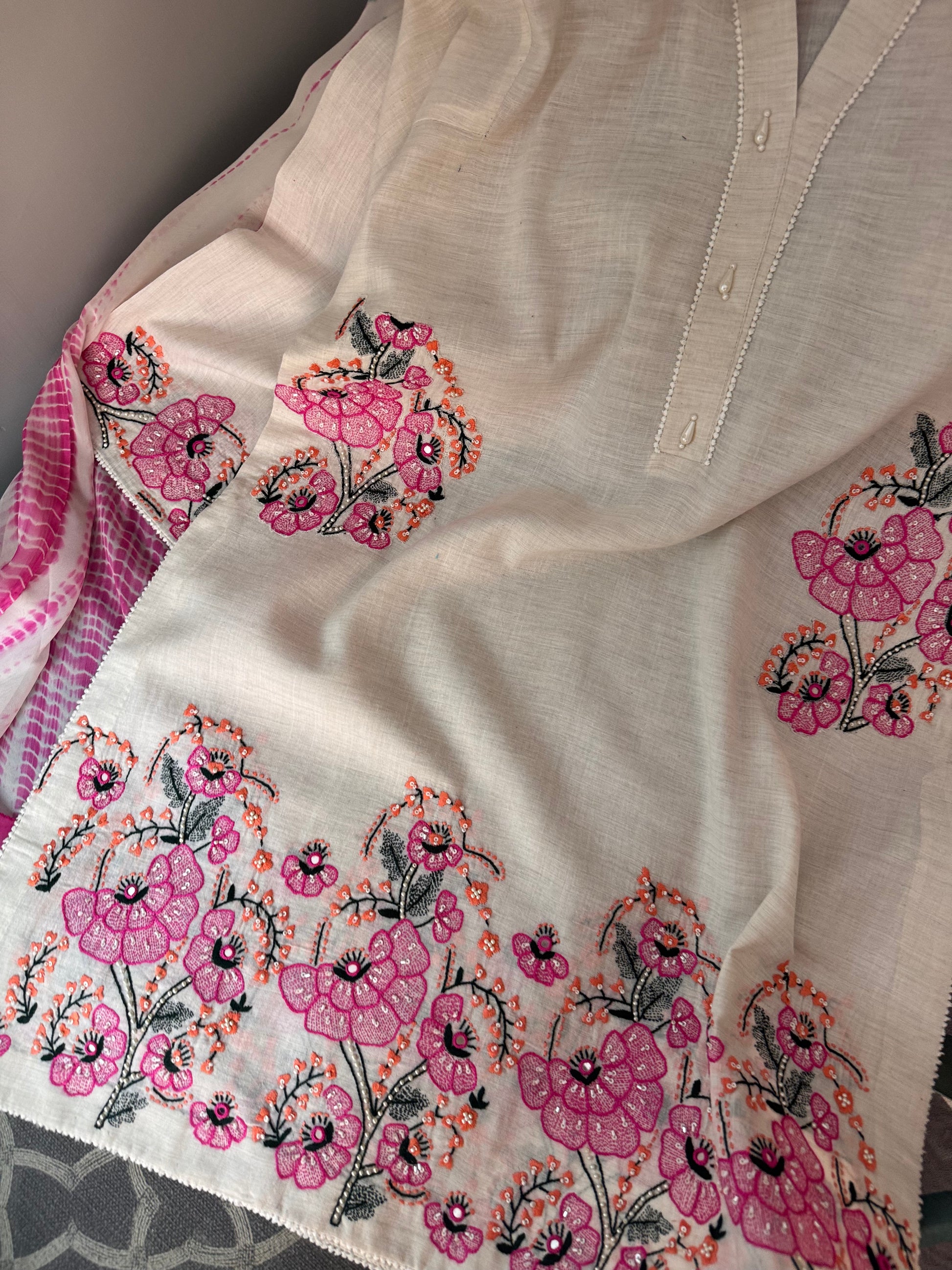 Hand Embroidered and hand embellished kurta with tie and dye dupatta