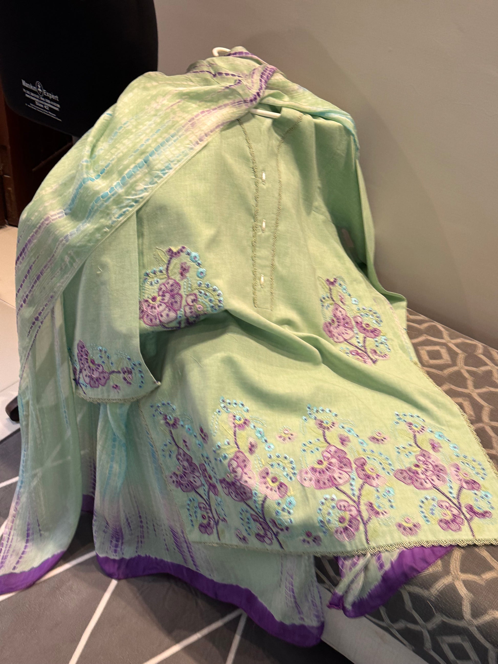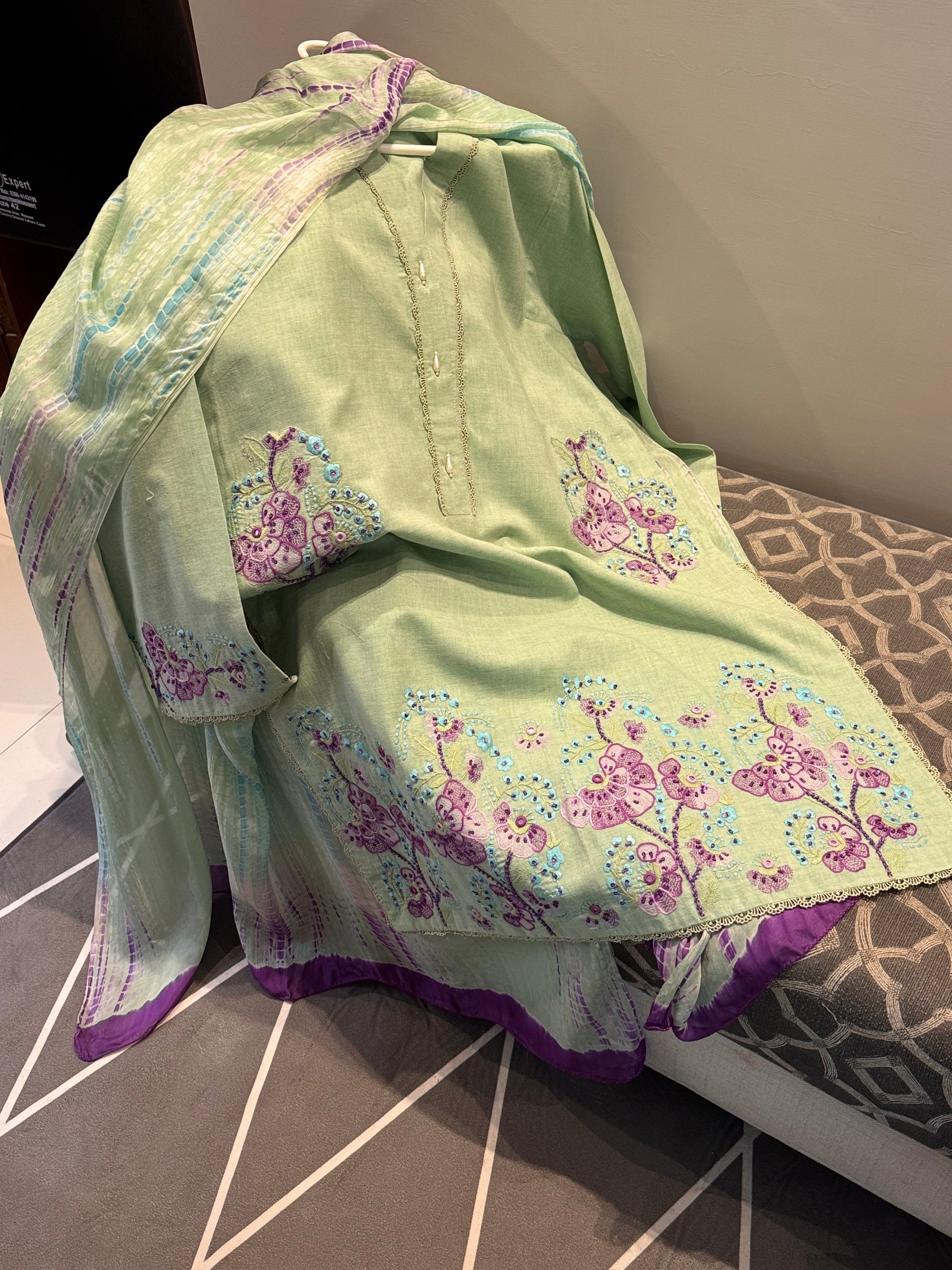 Hand Embroidered and hand embellished kurta with tie and dye dupatta