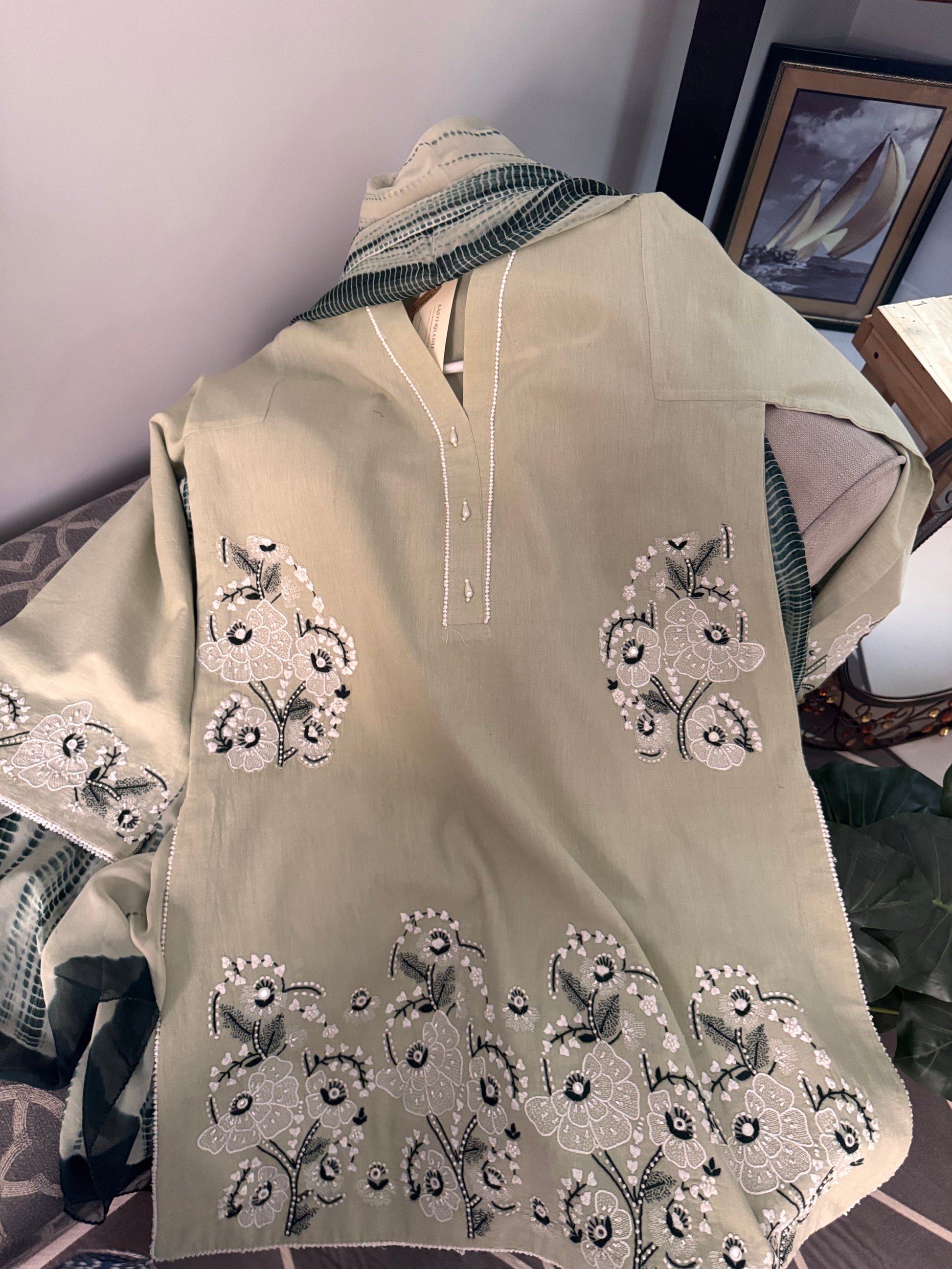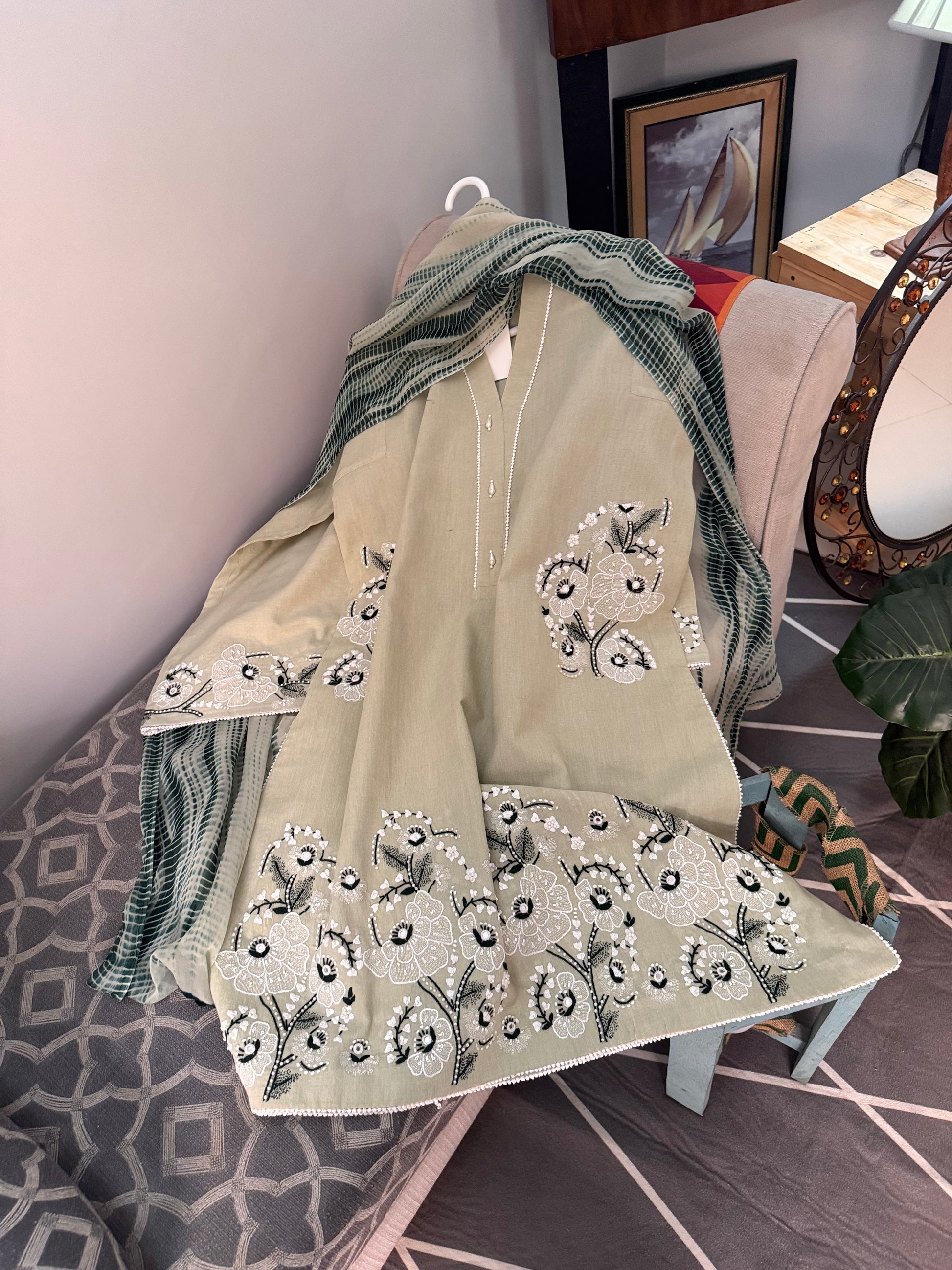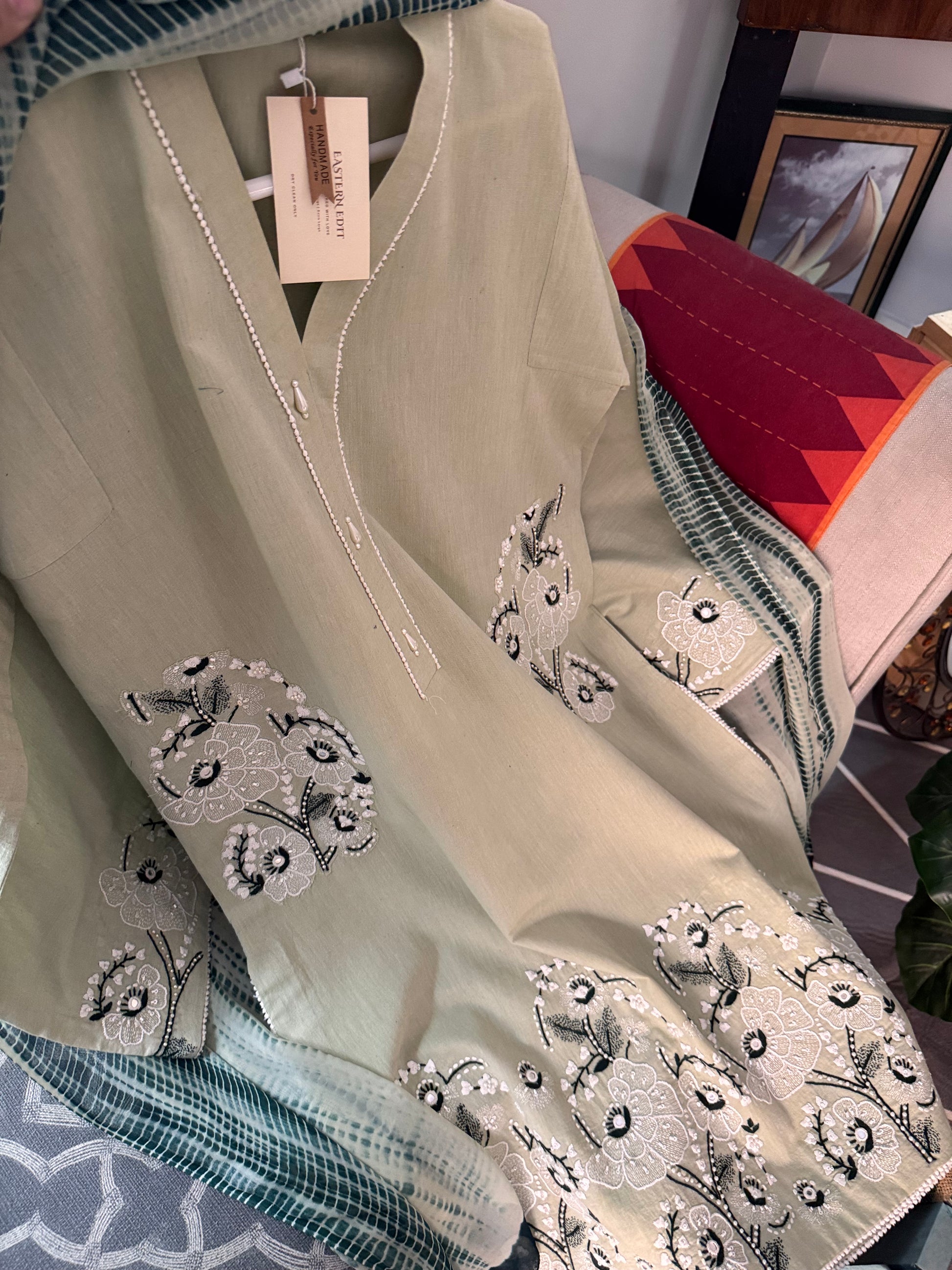 Hand Embroidered and hand embellished kurta with tie and dye dupatta