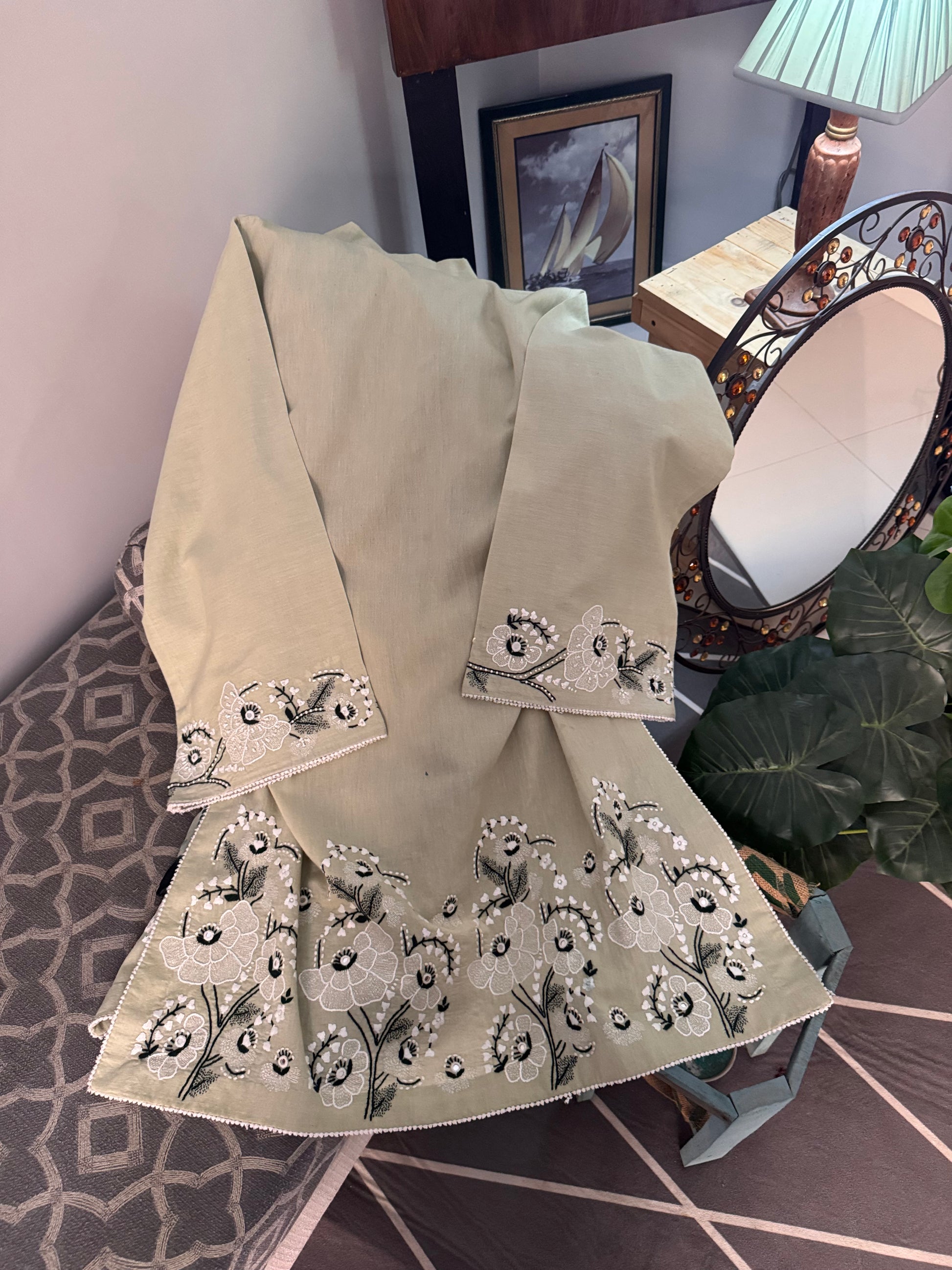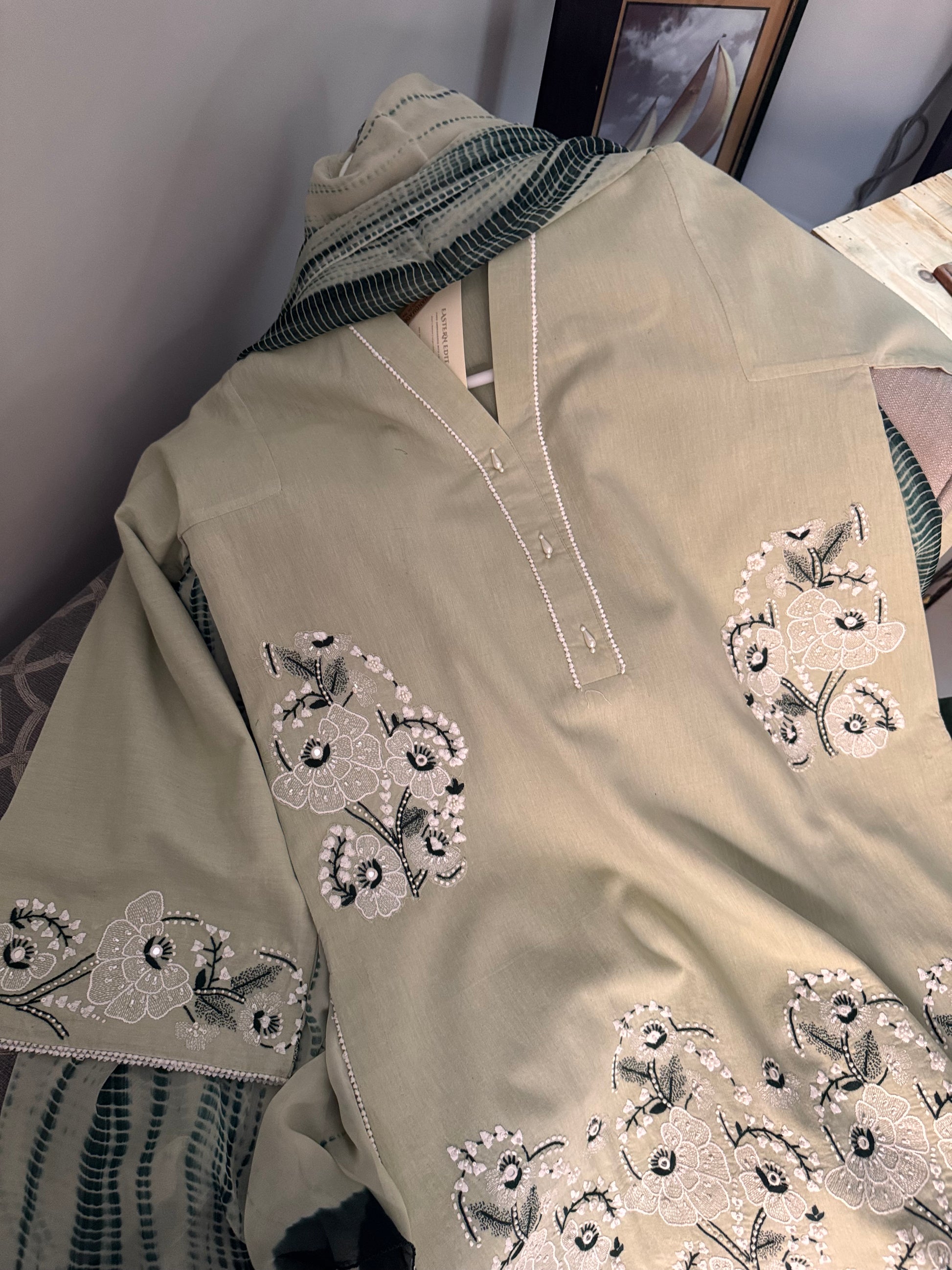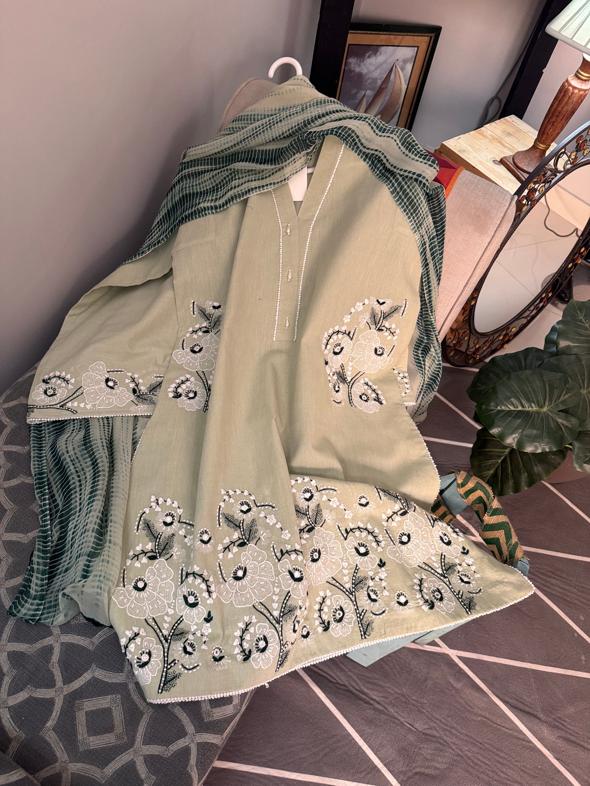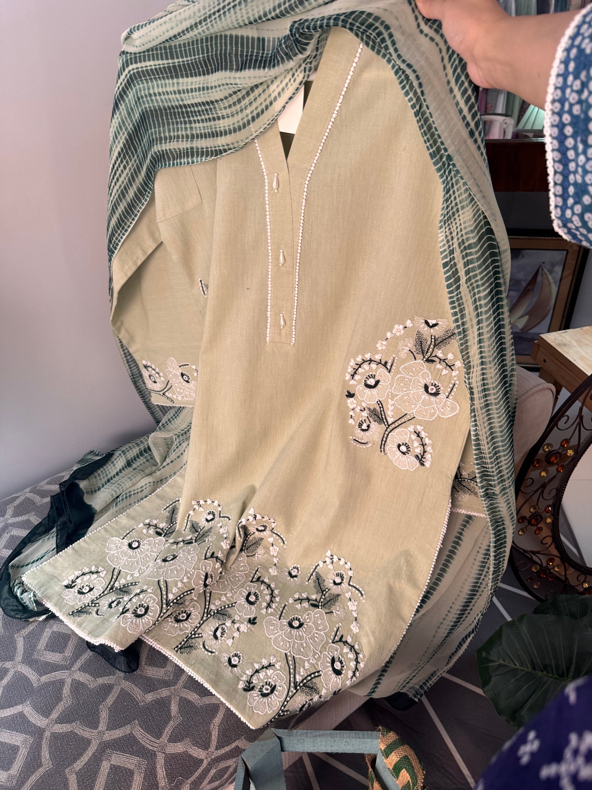 Hand Embroidered and hand embellished kurta with tie and dye dupatta