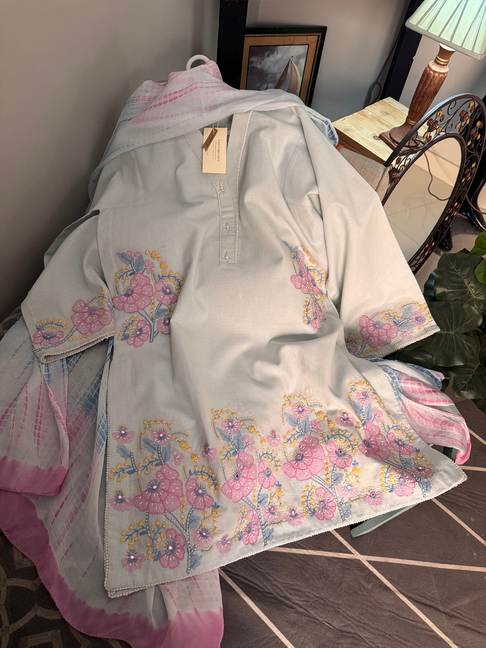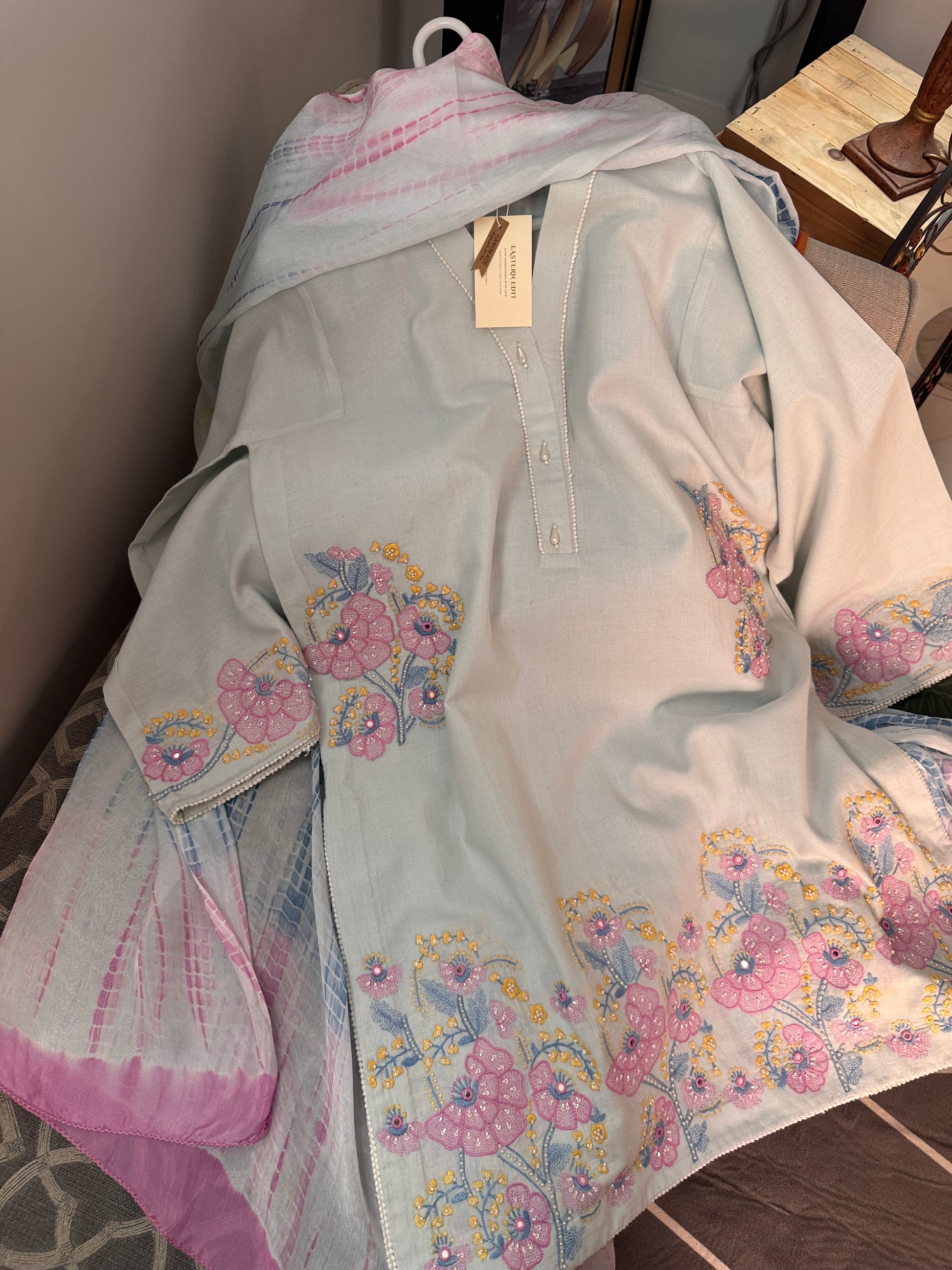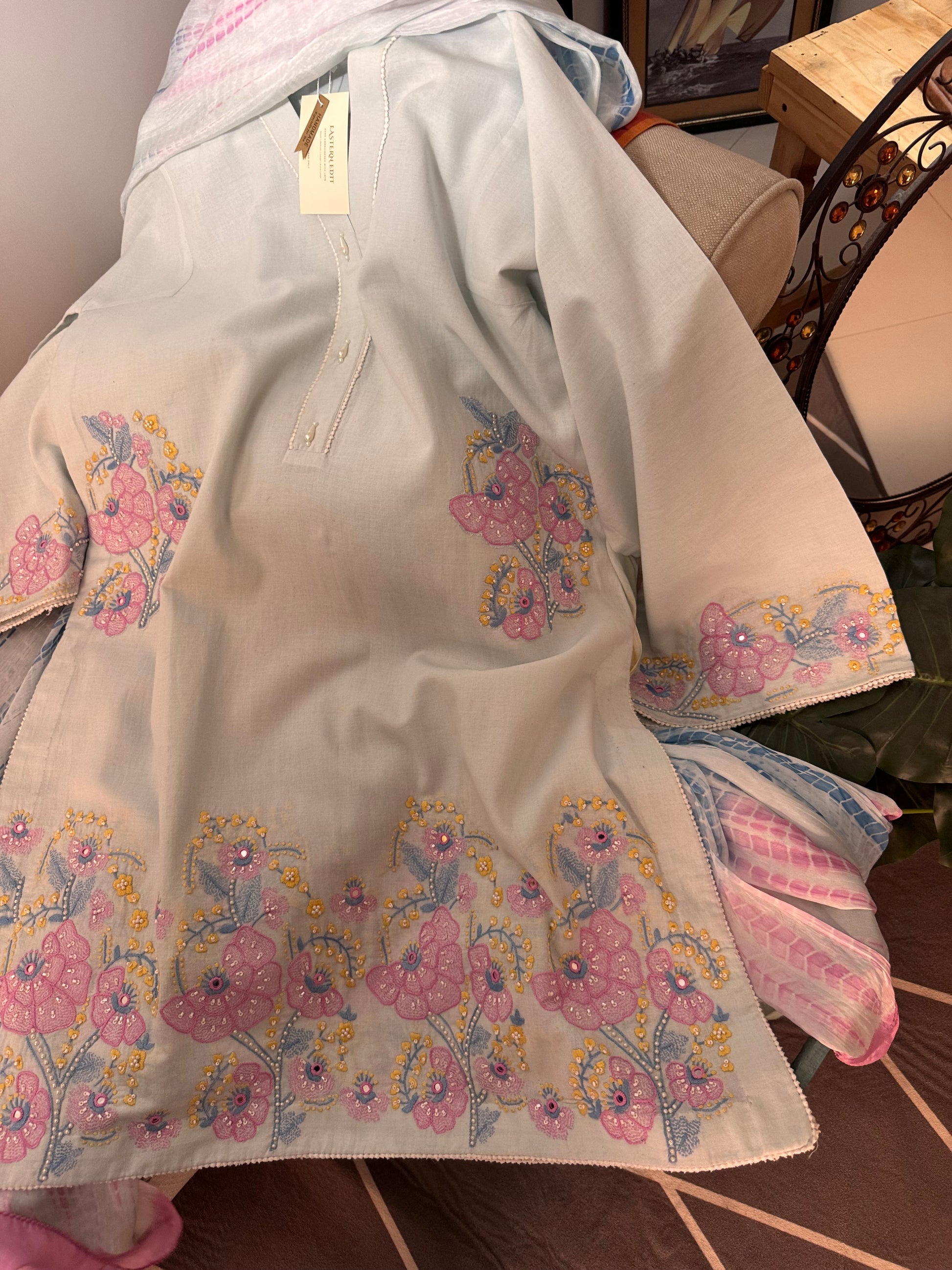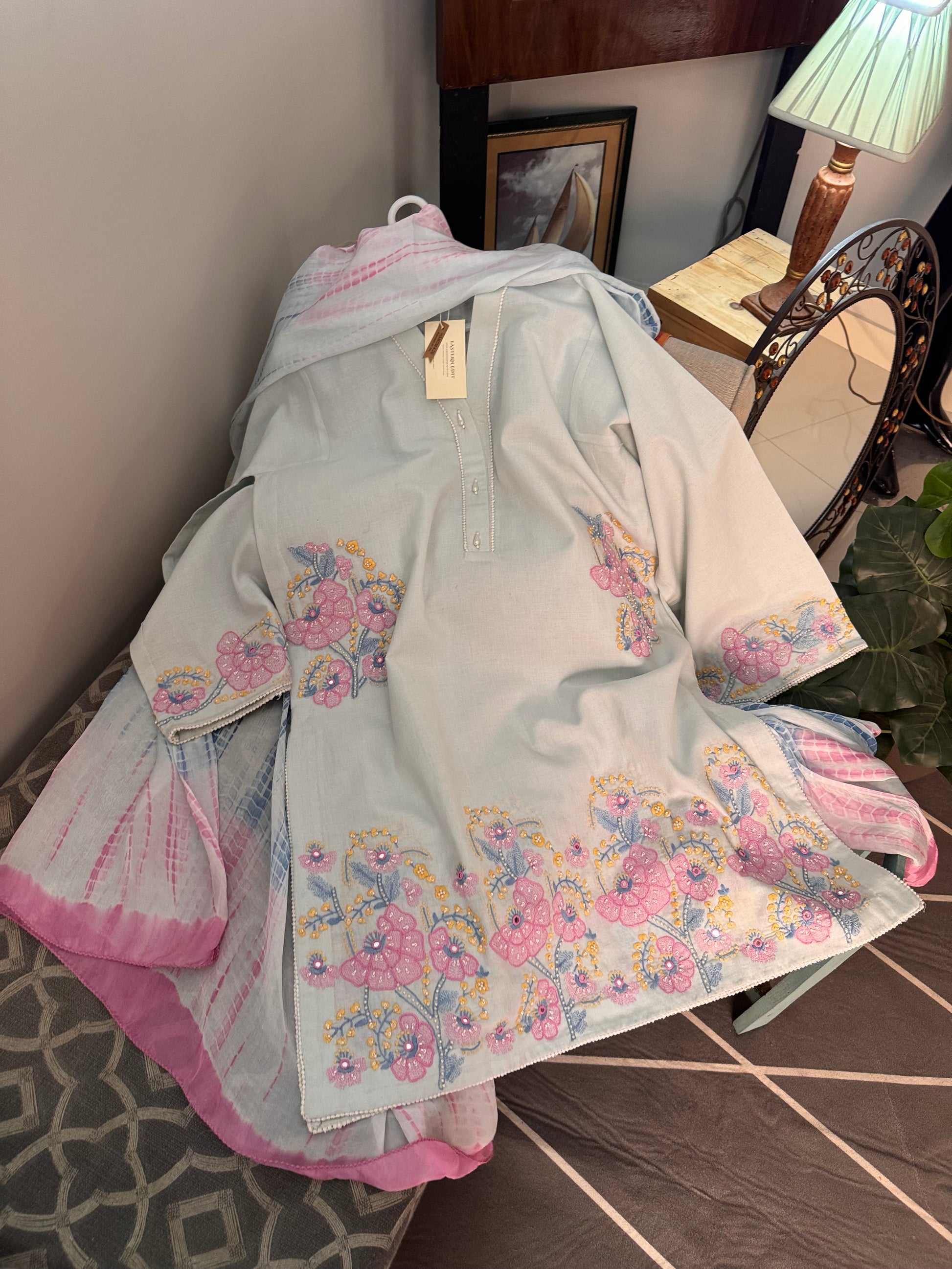 Hand Embroidered and hand embellished kurta with tie and dye dupatta