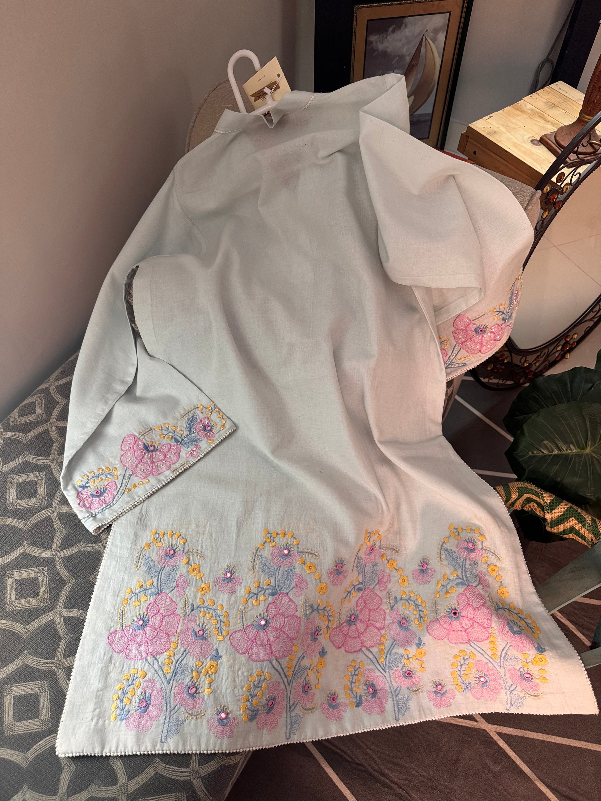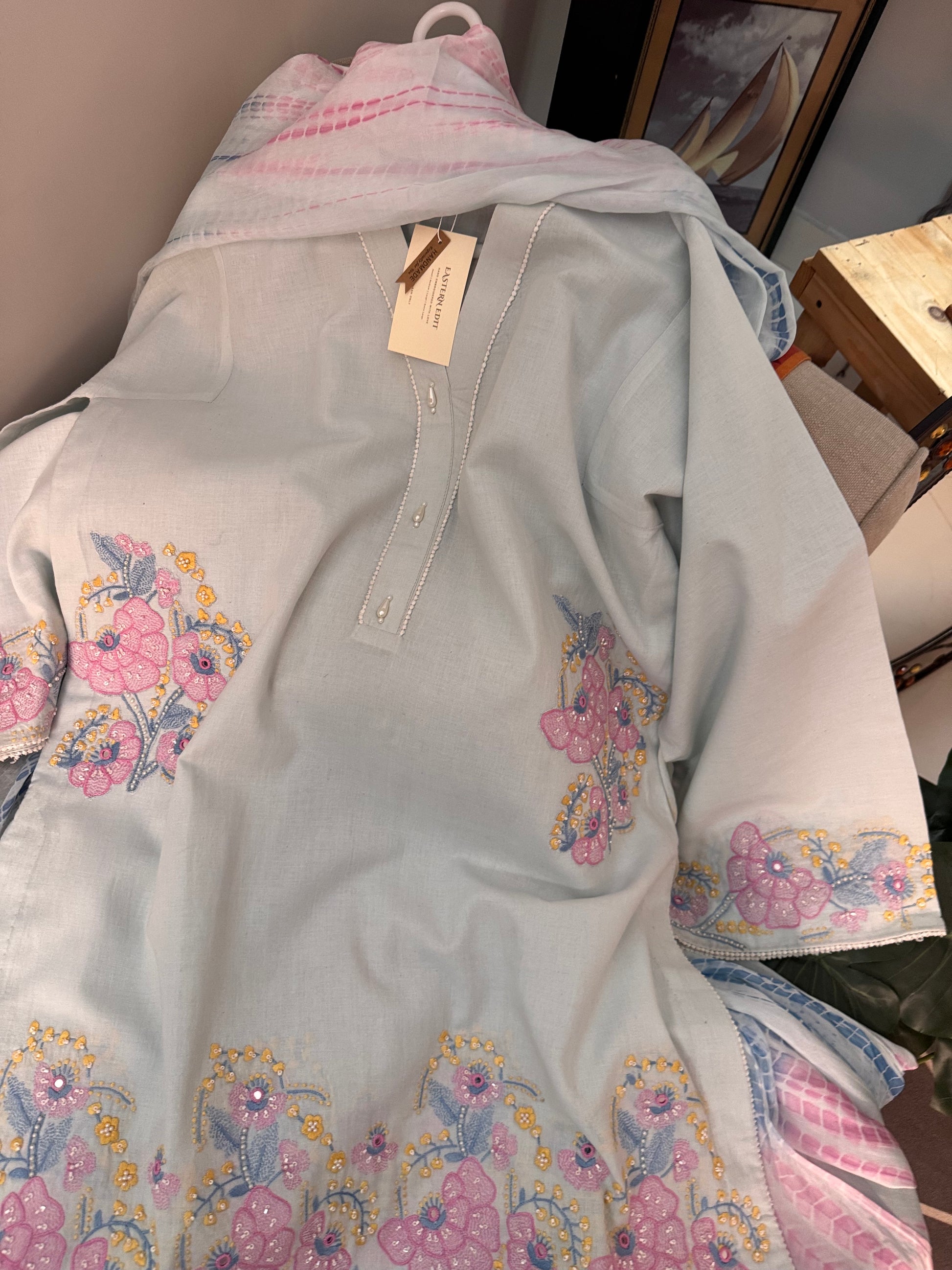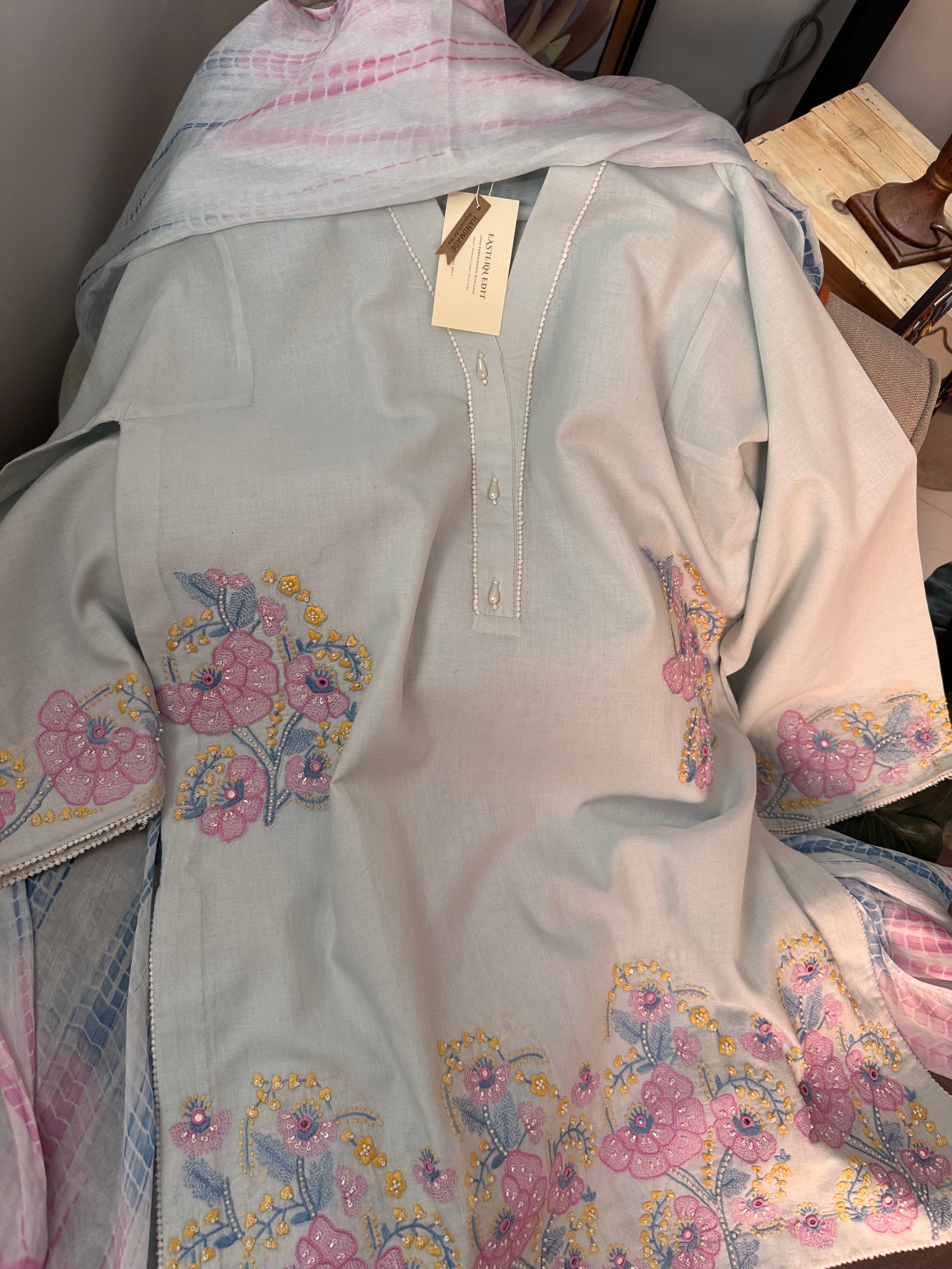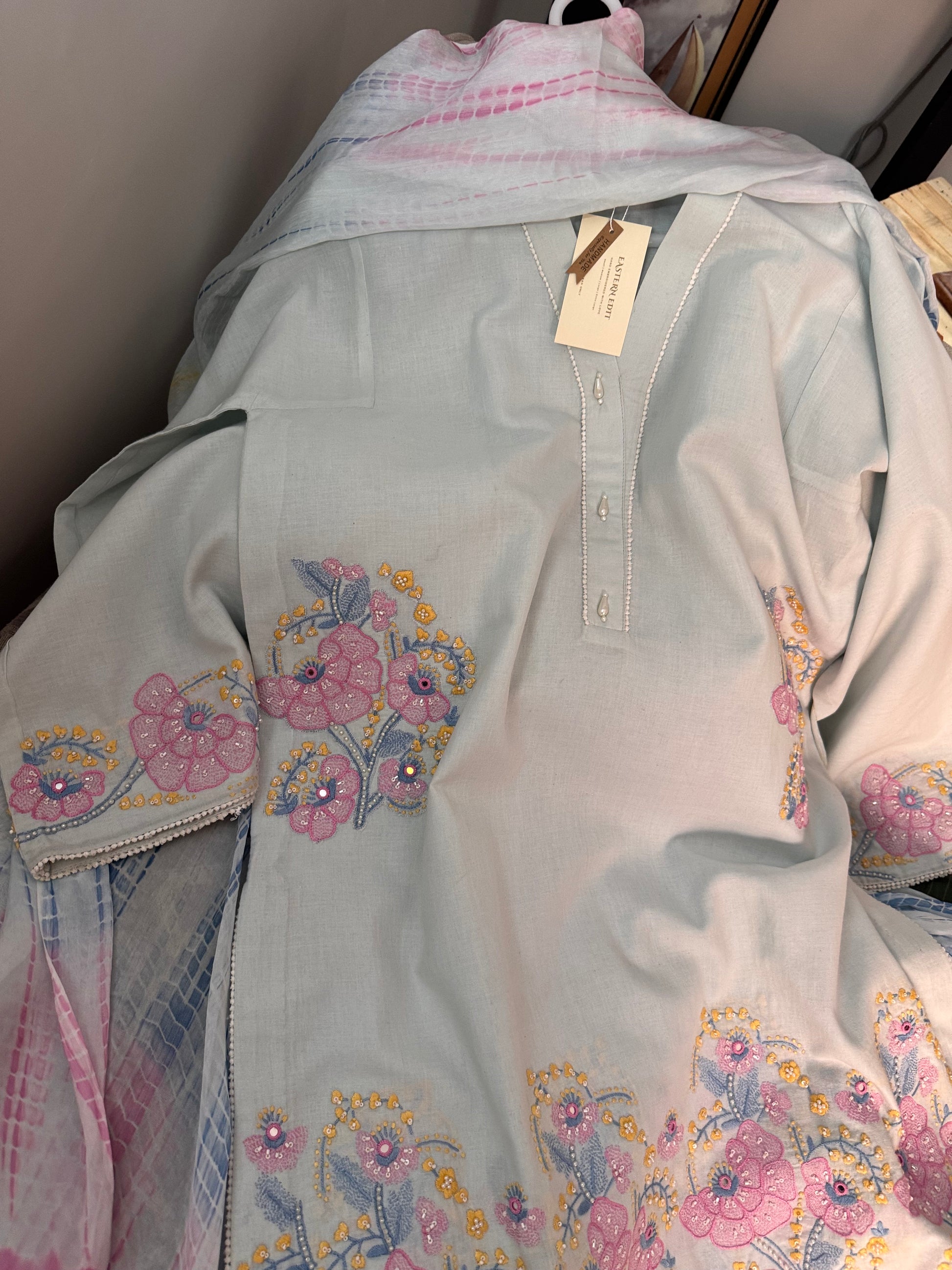 Hand Embroidered and hand embellished kurta with tie and dye dupatta