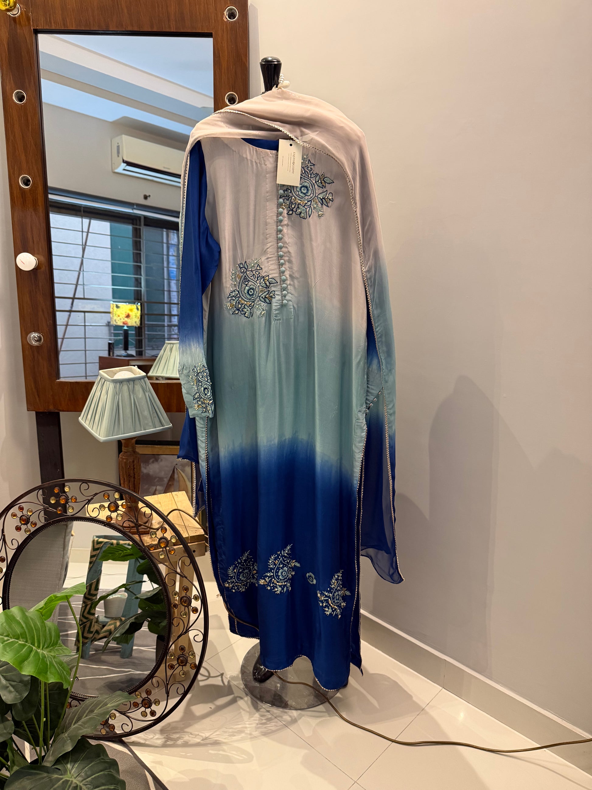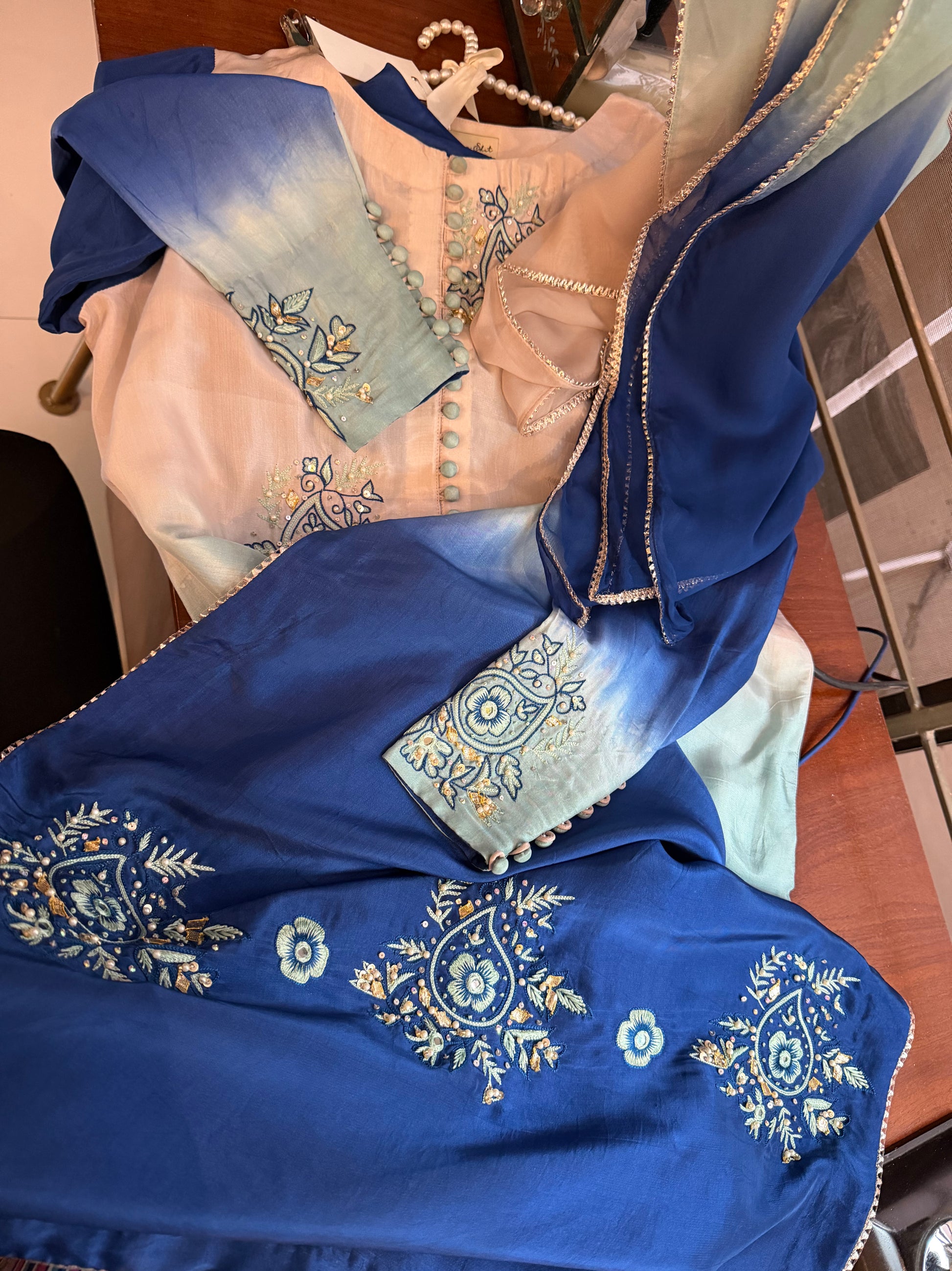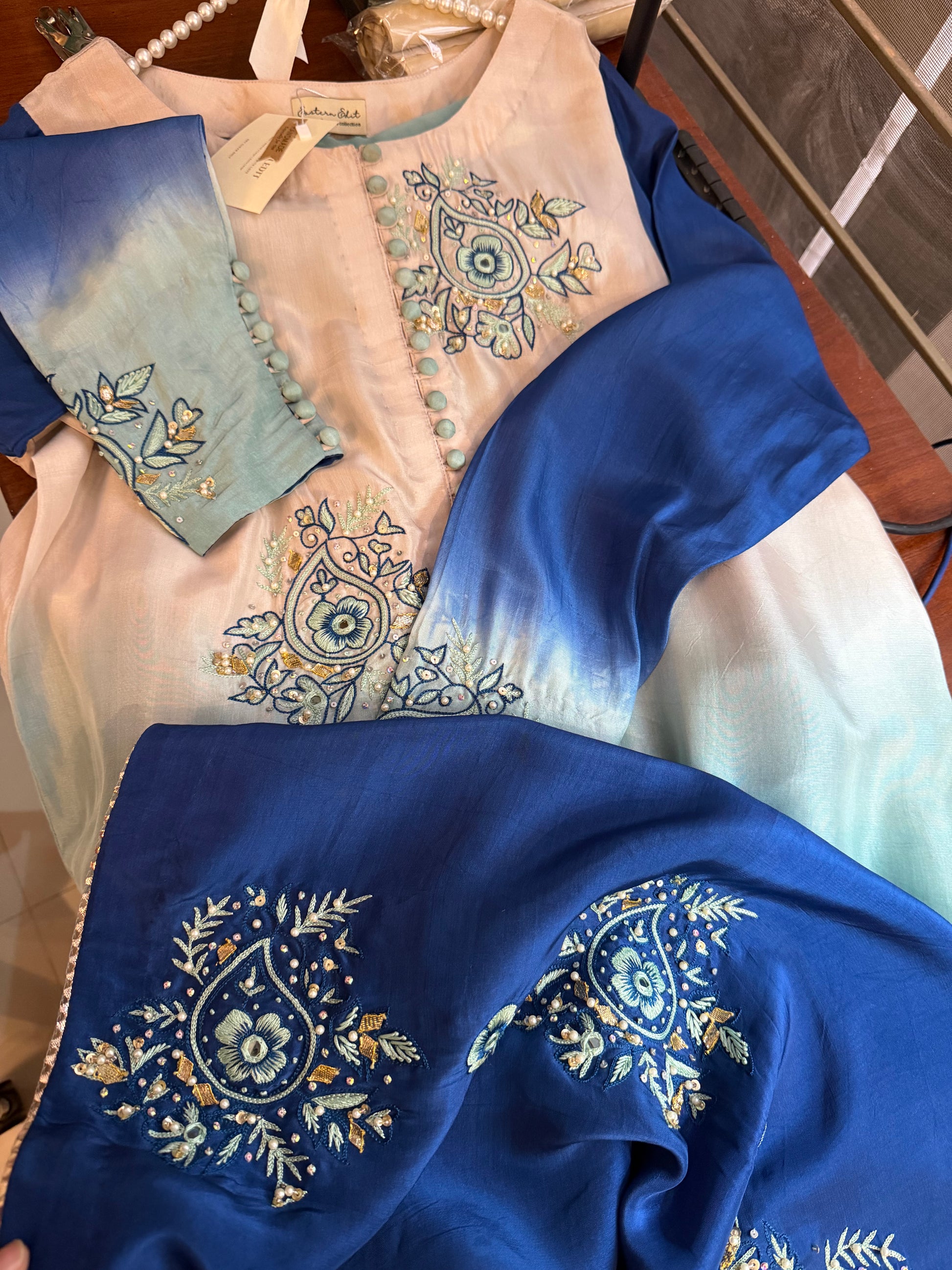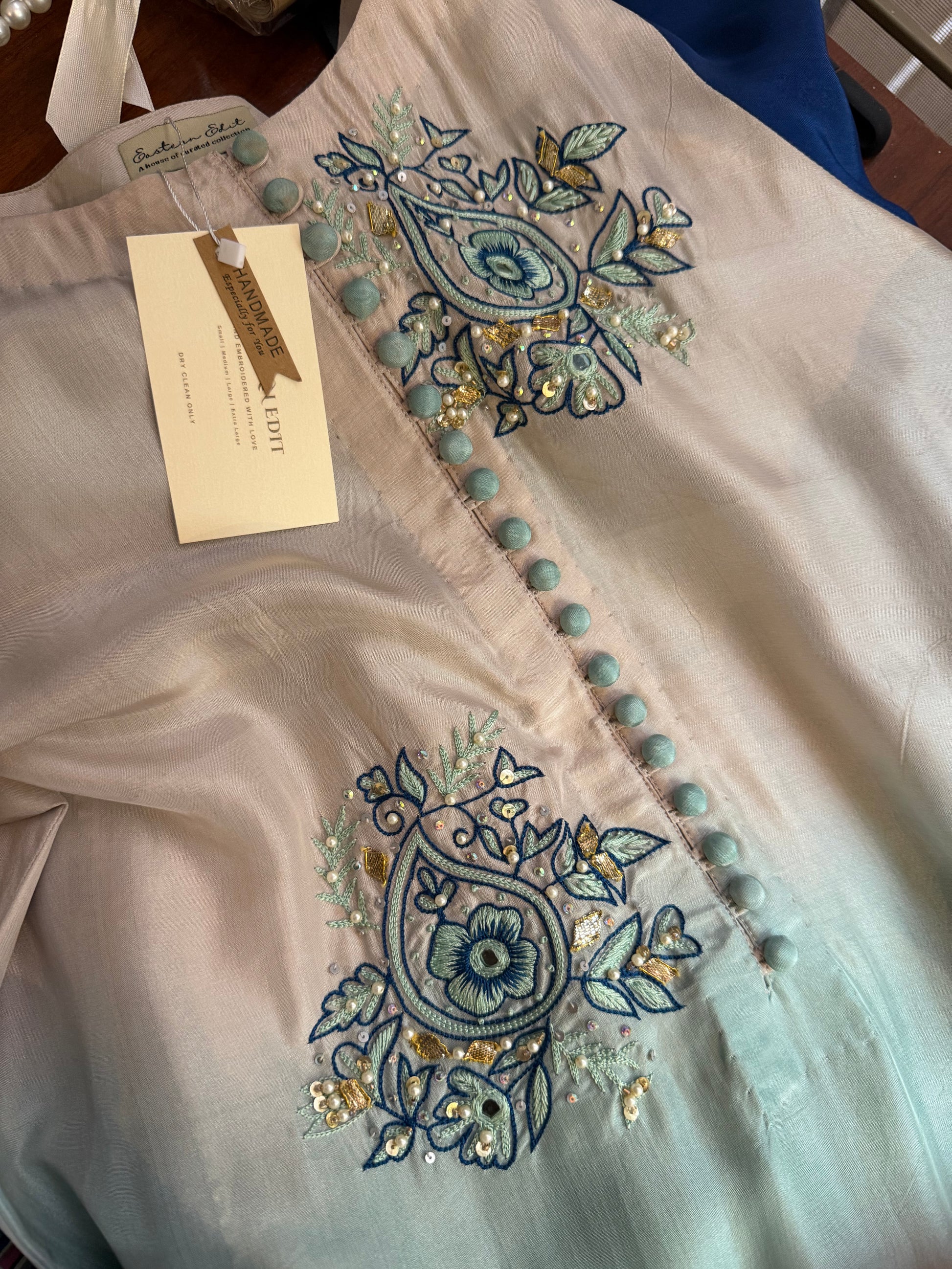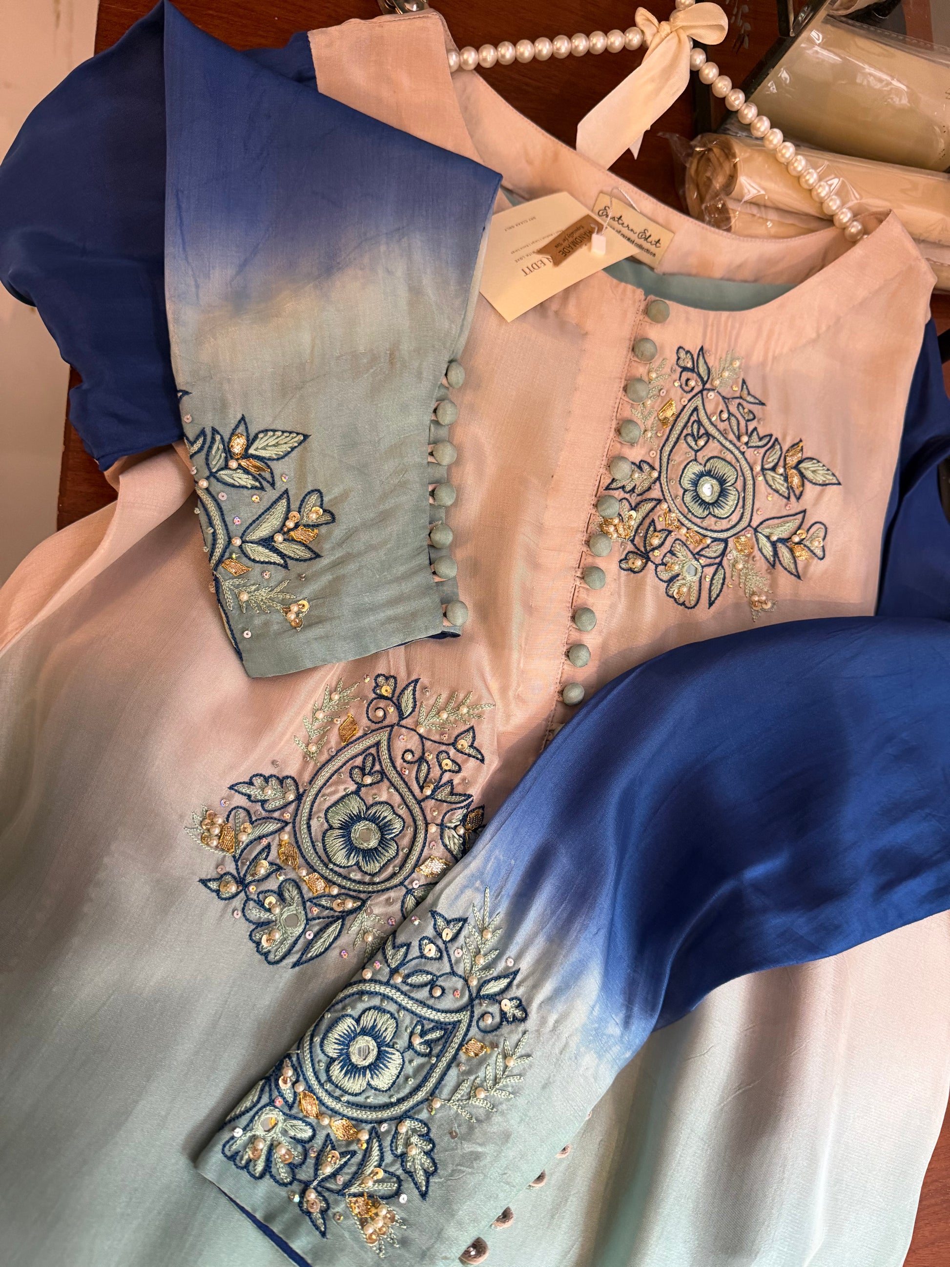1- Stitched shirt hand embroidered with goti, pearl and sequins work