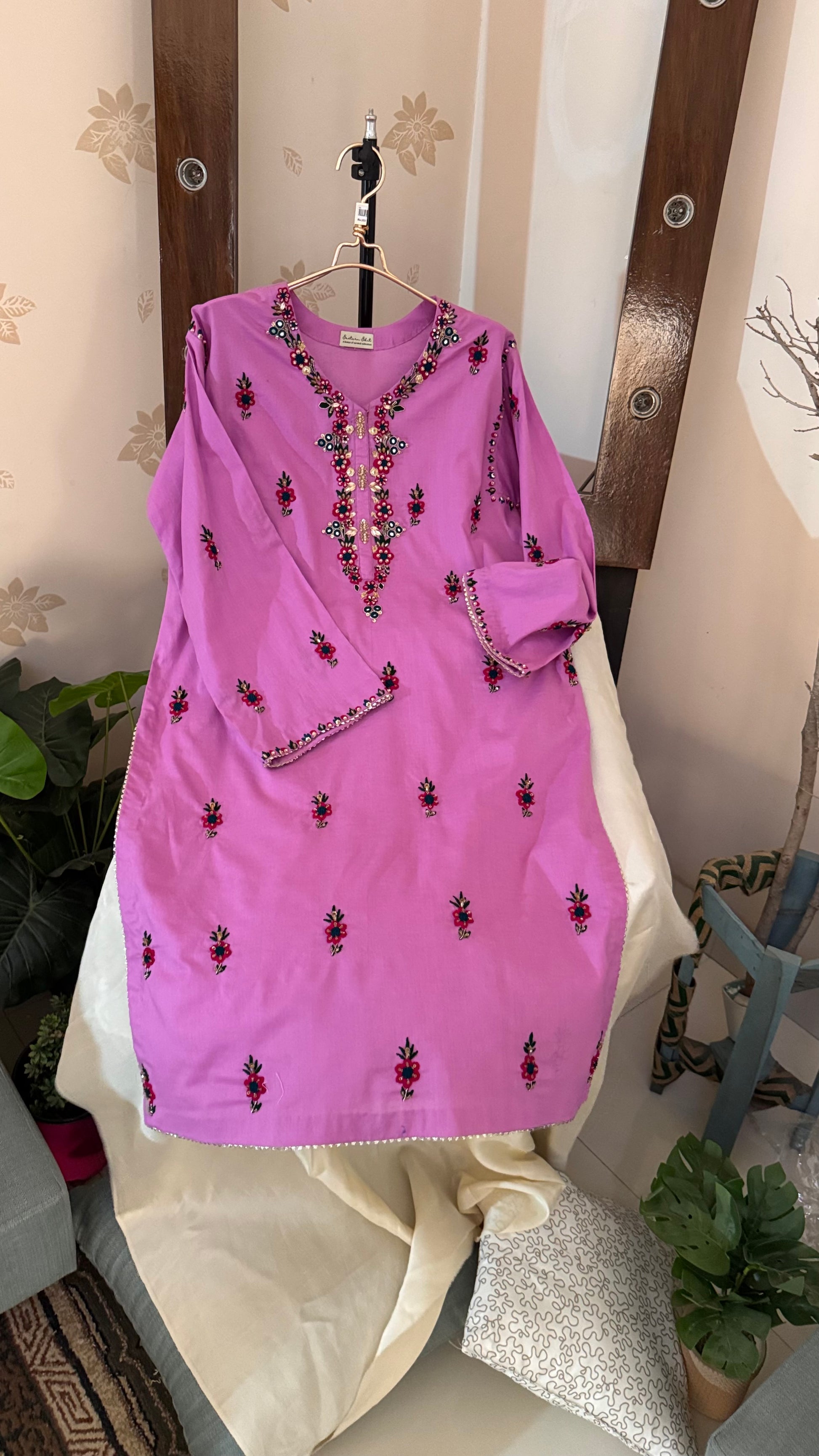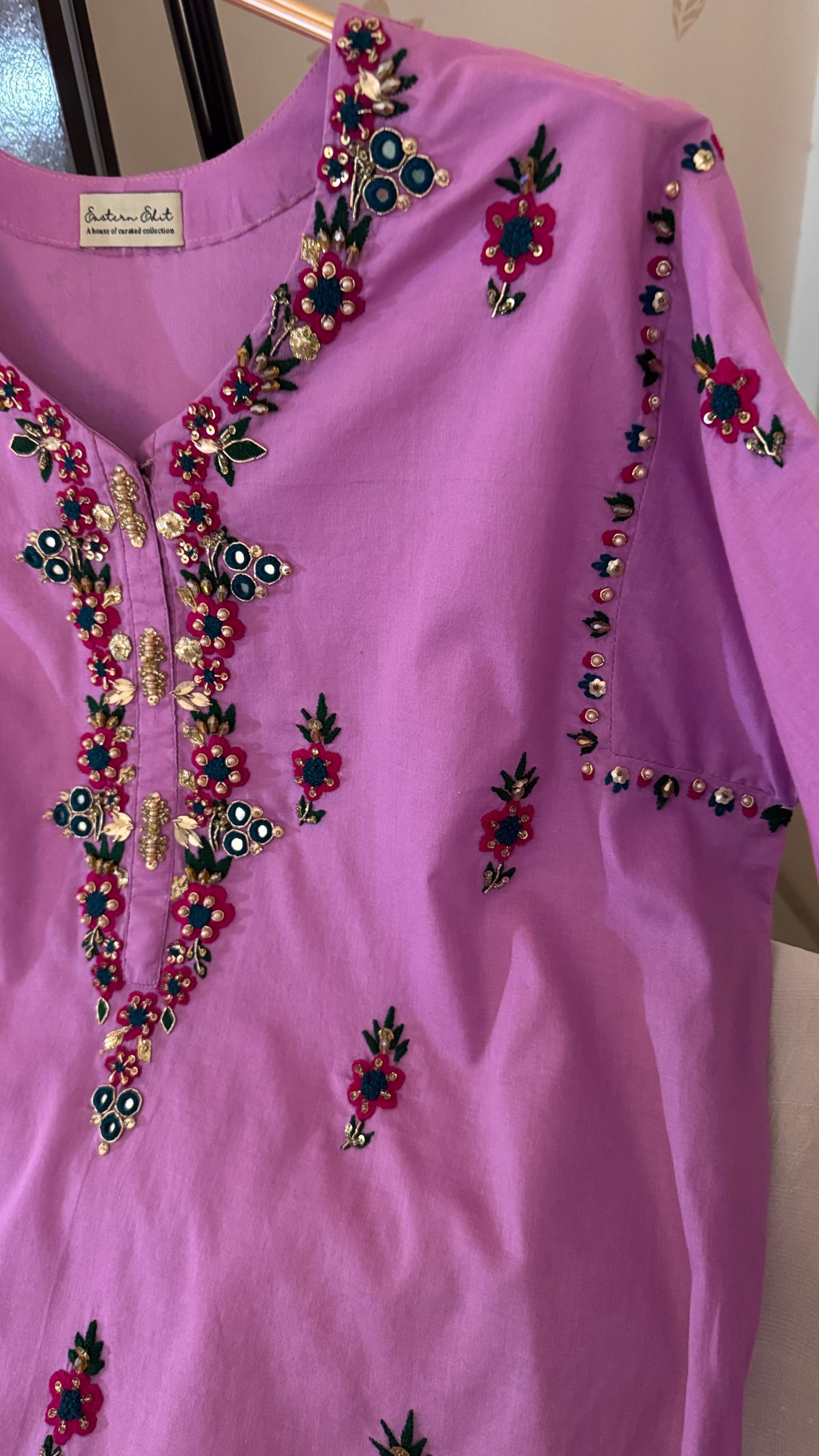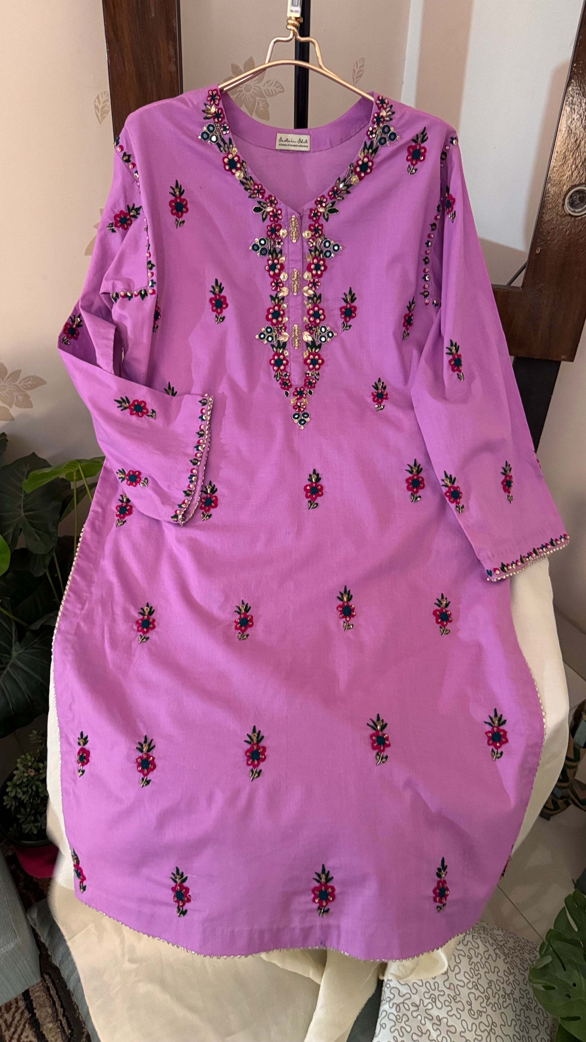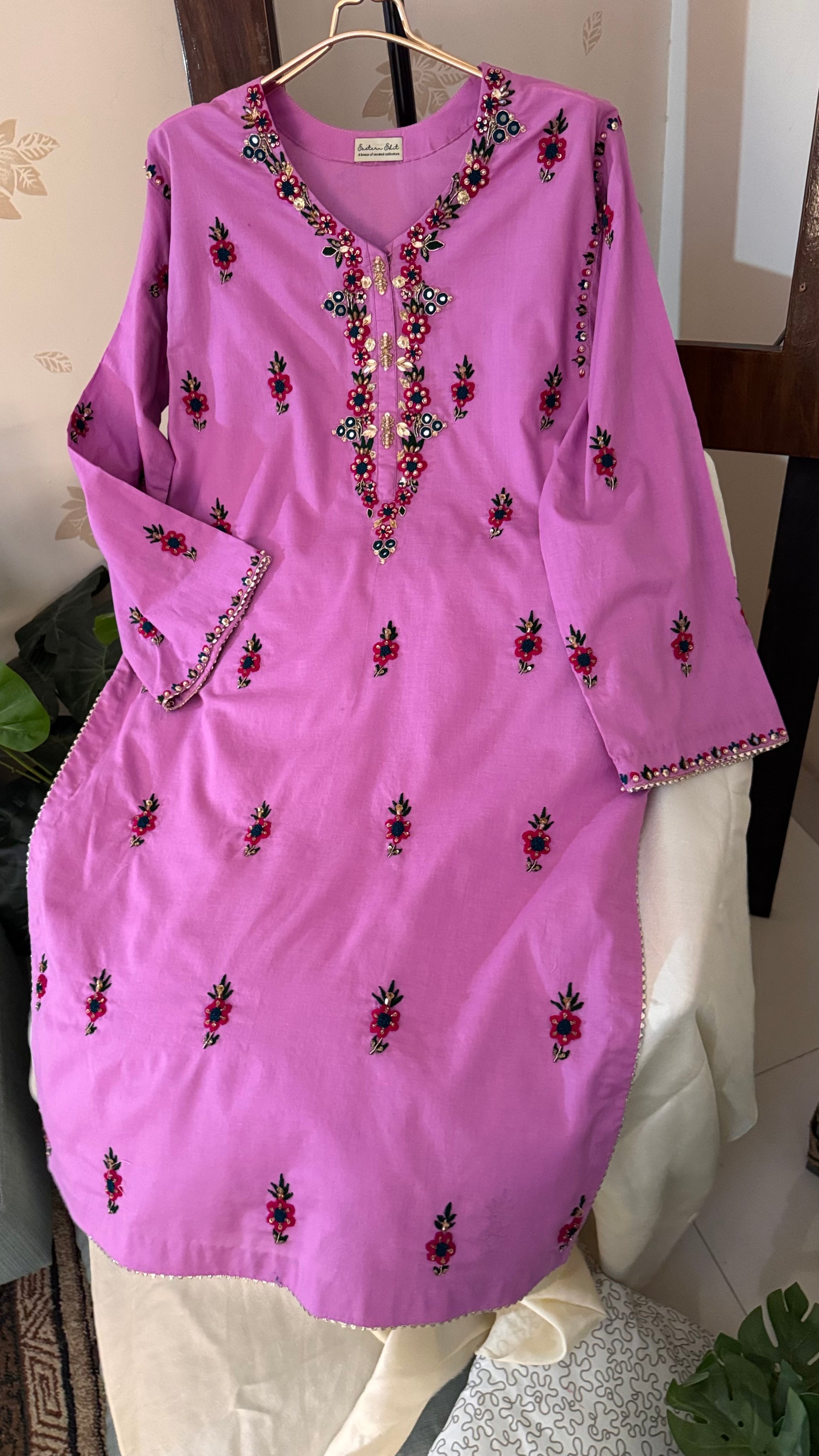 Hand Embroidered Kurta with pearl, sequence and goti work.