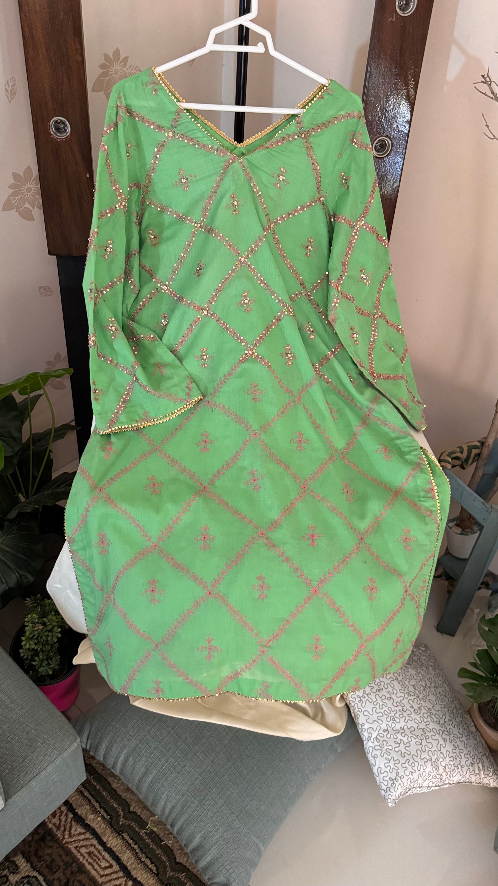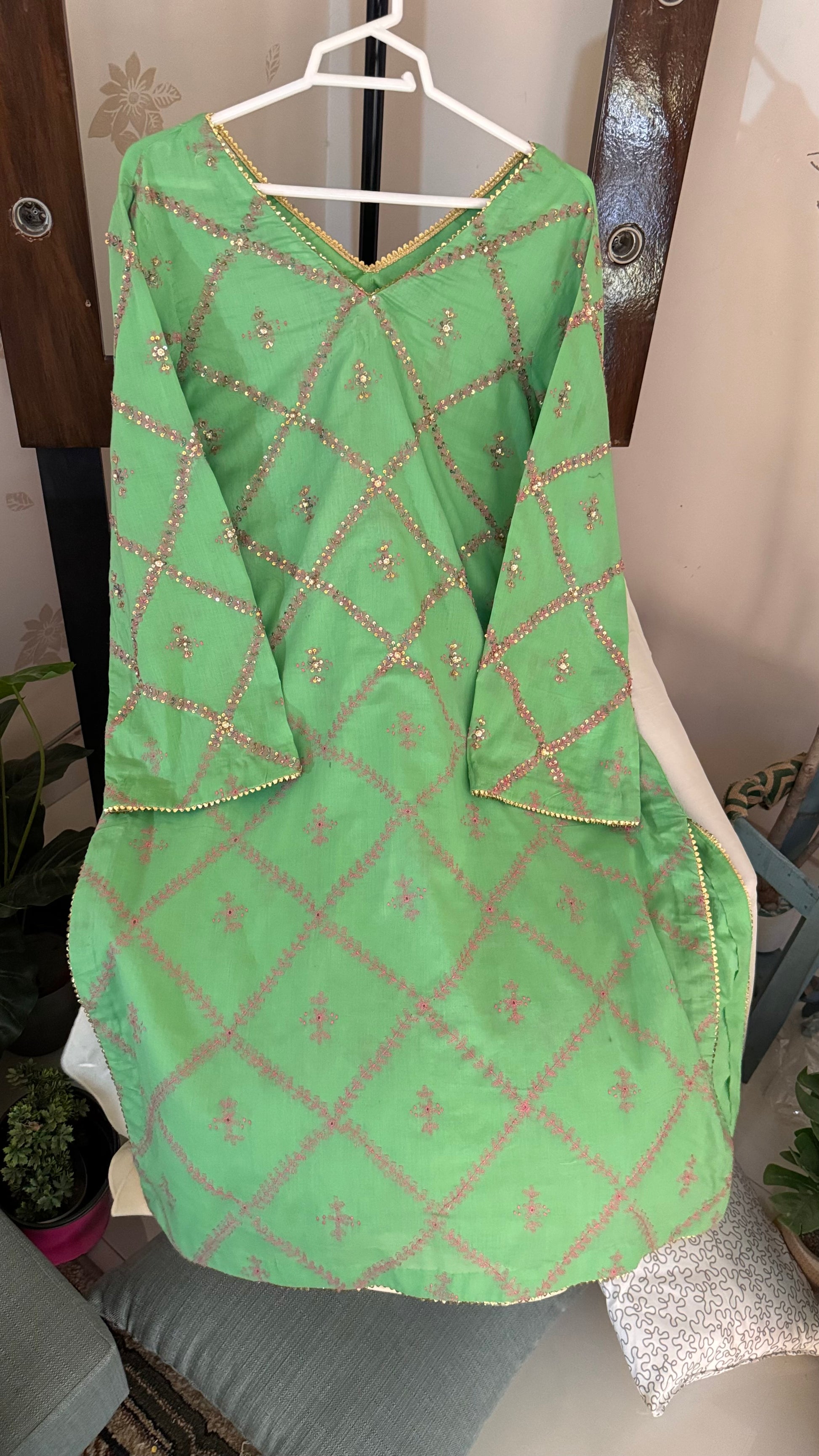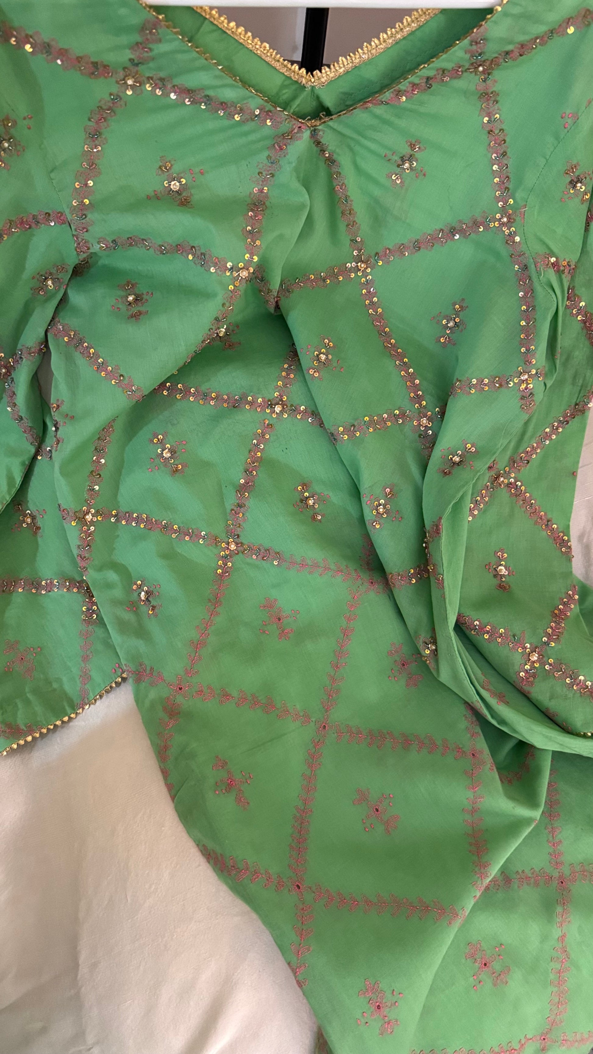 Hand Embroidered Kurta with pearl, sequence and goti work.