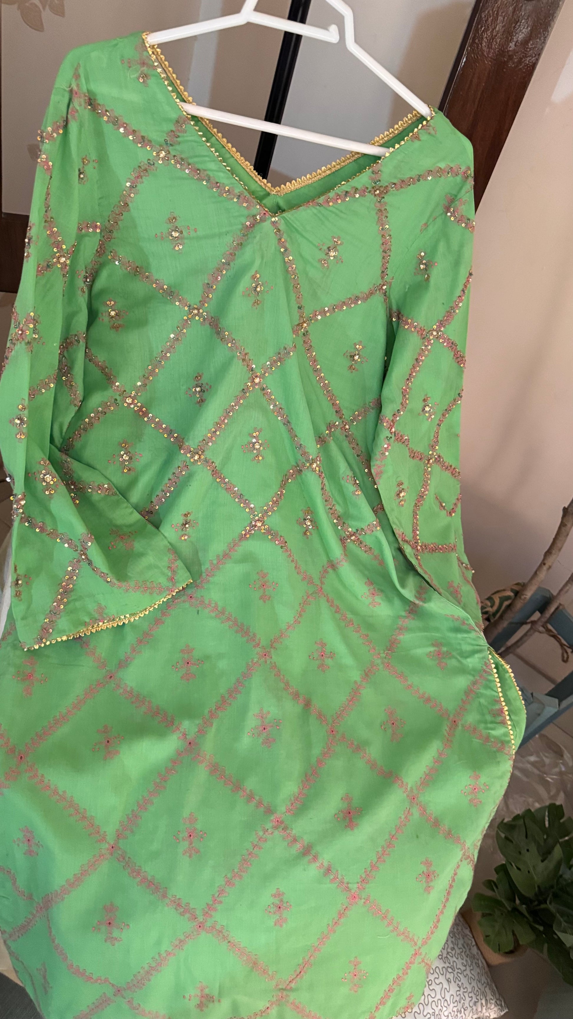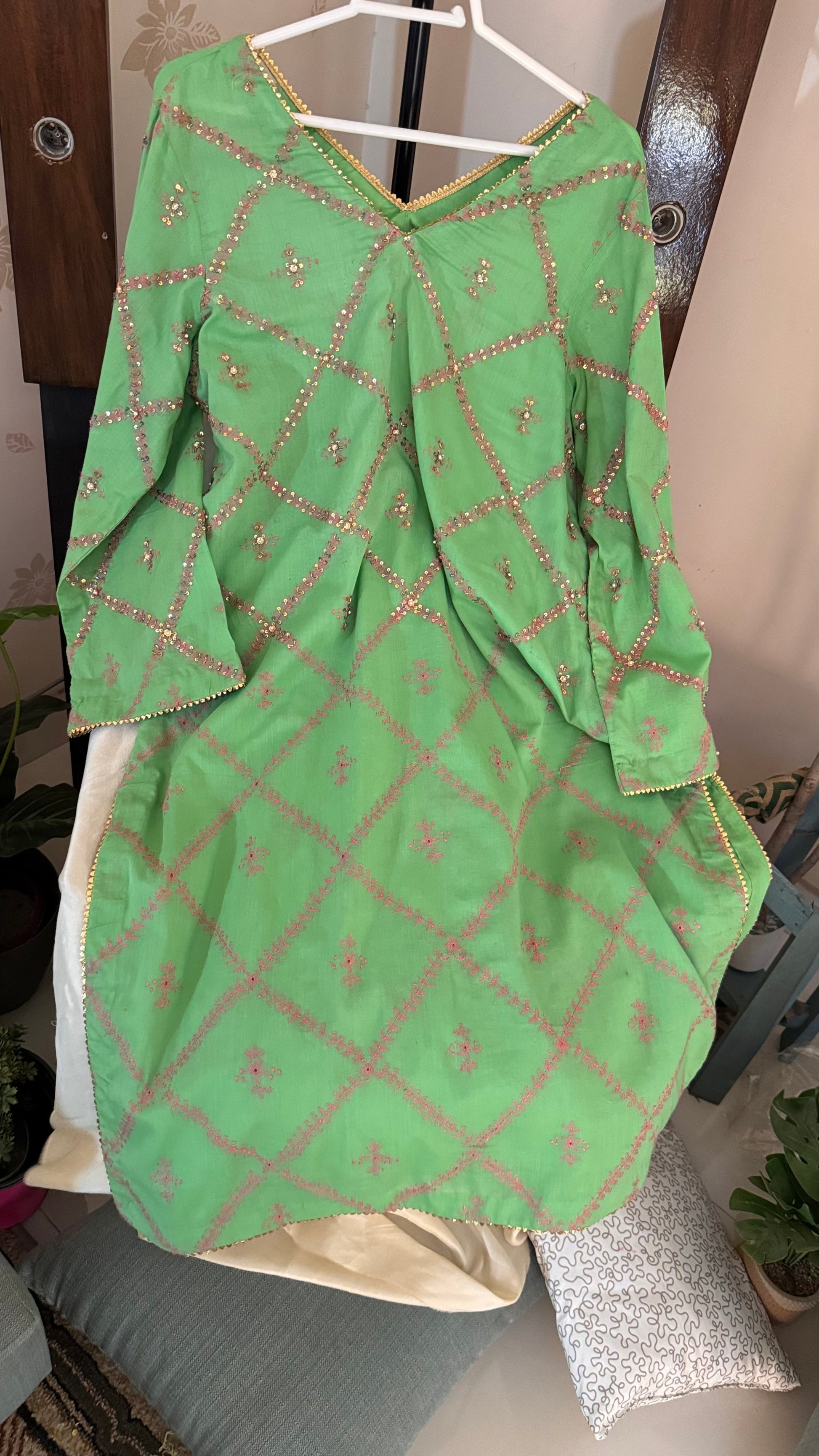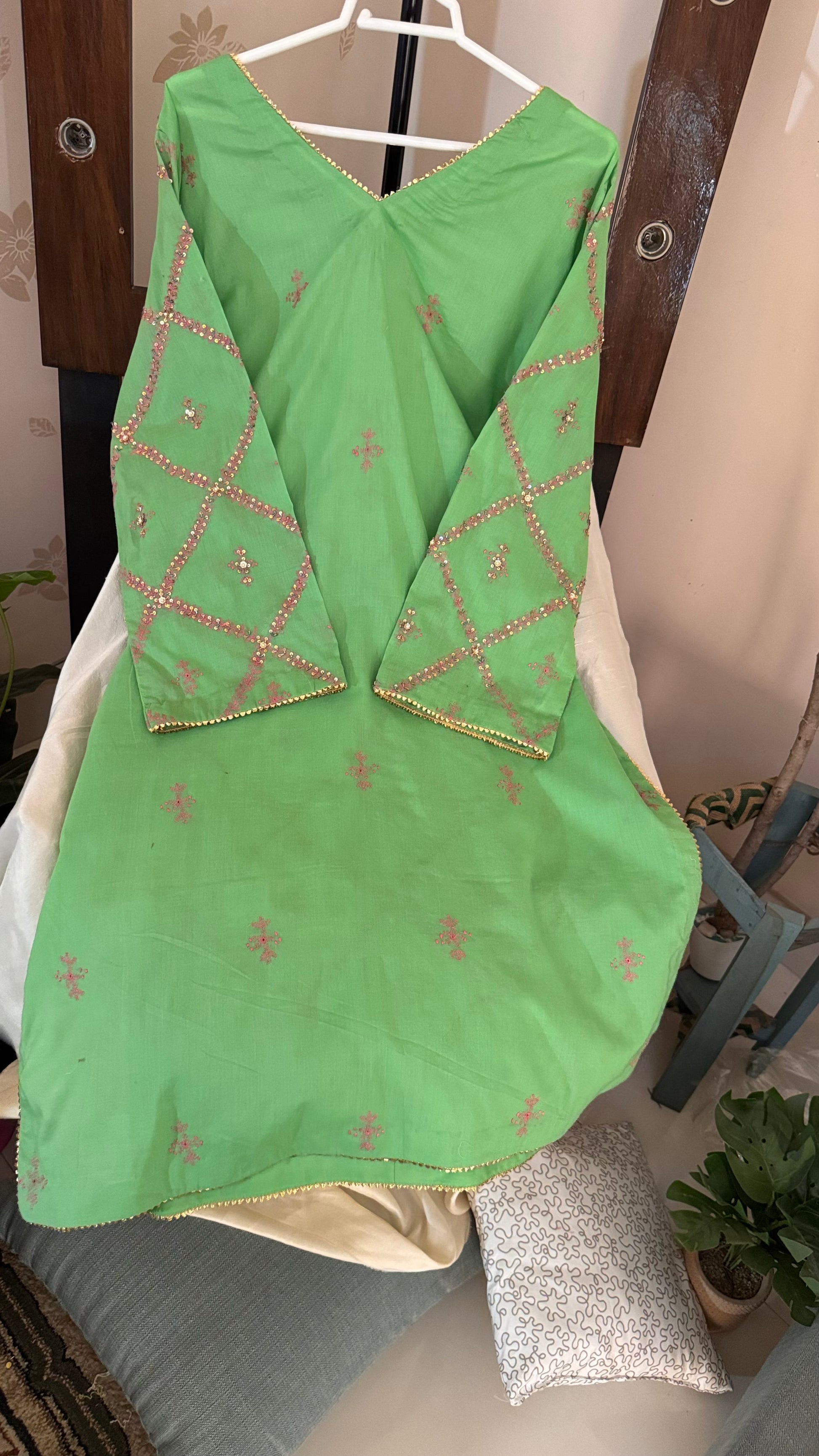 Hand Embroidered Kurta with pearl, sequence and goti work.
