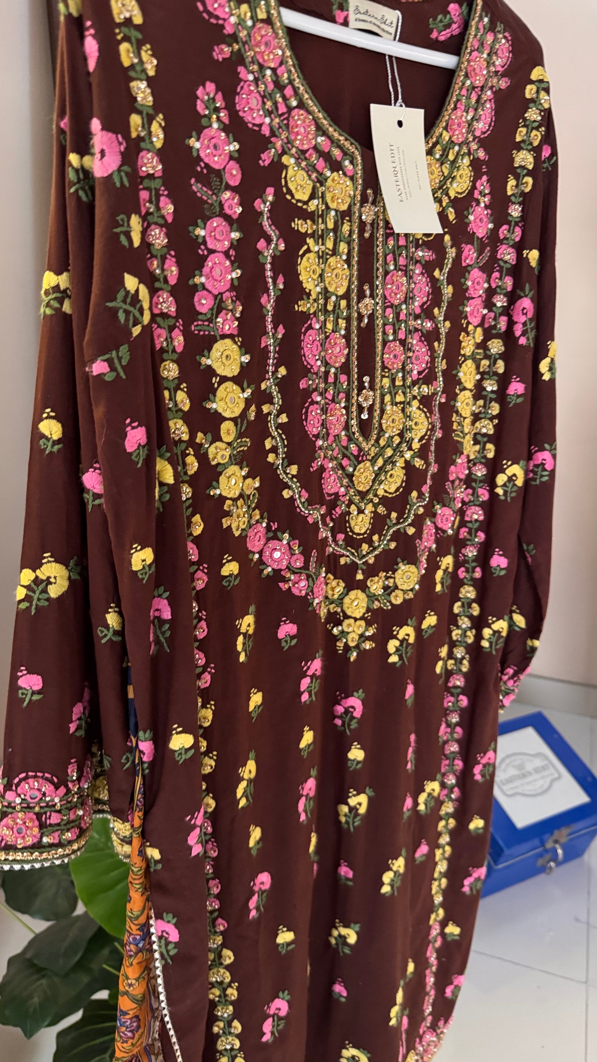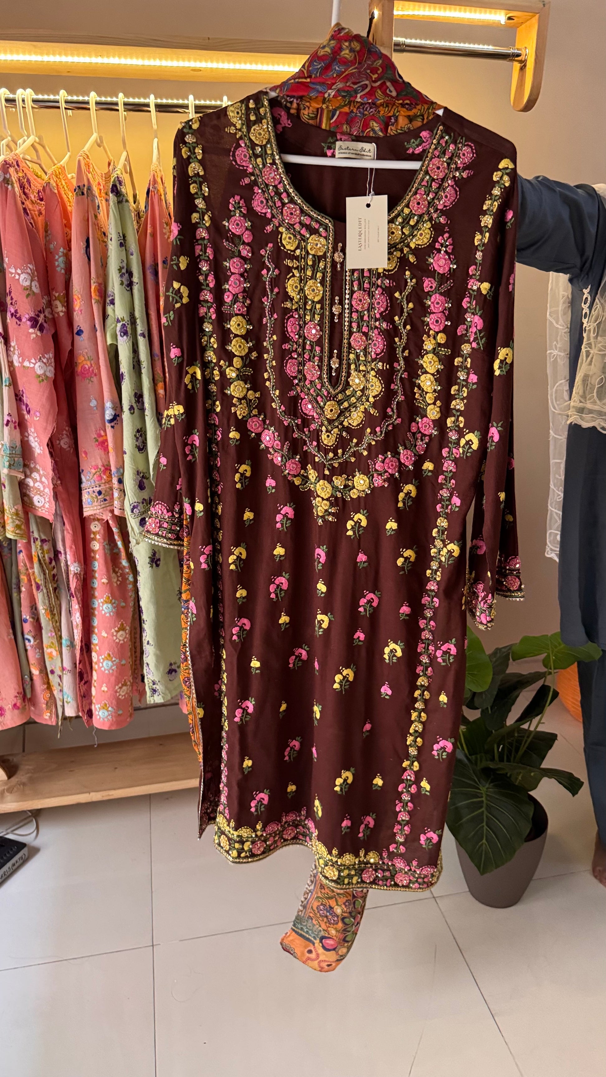 Hand Embroidered Kurta with pearl, sequence and goti work.