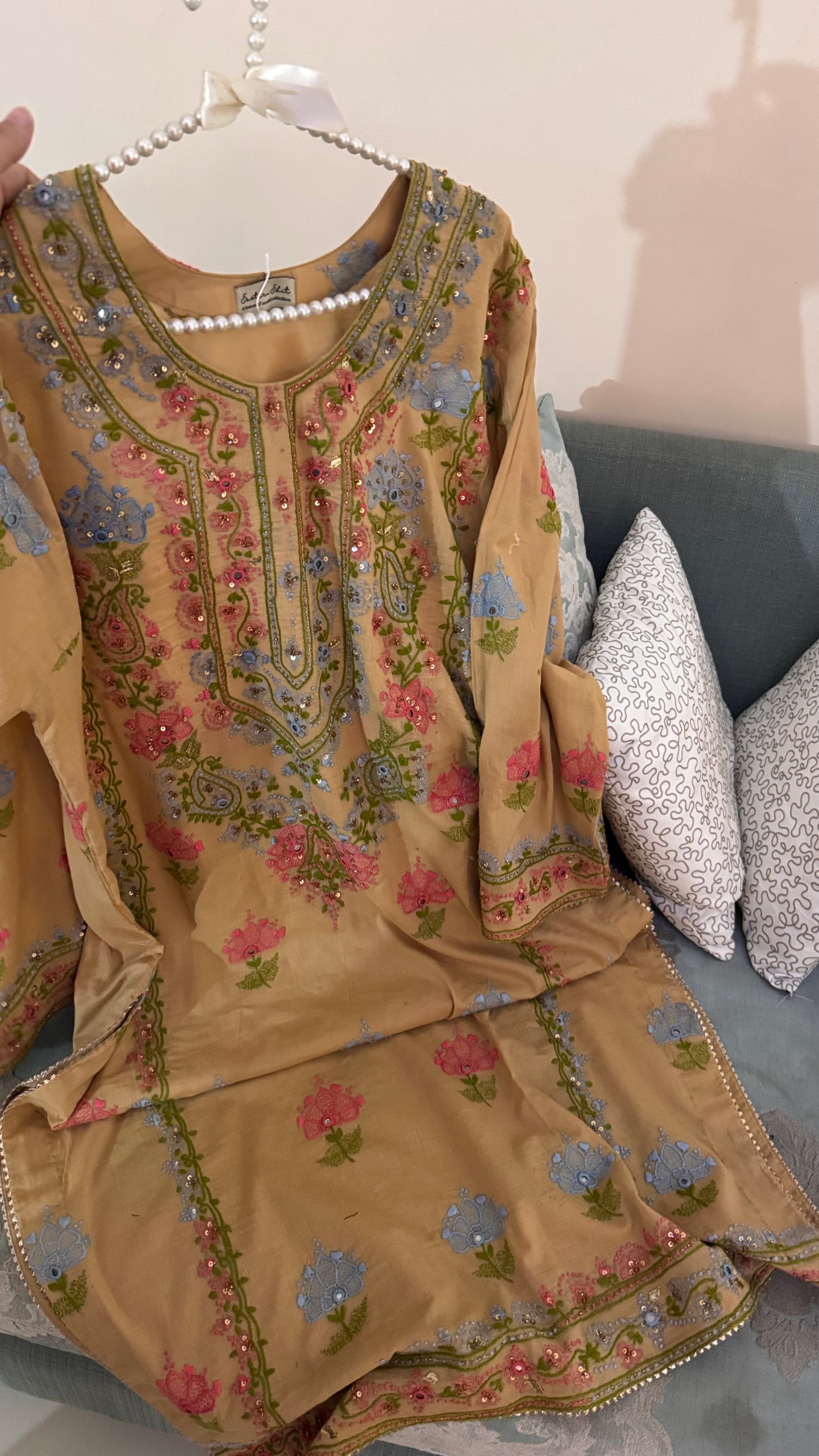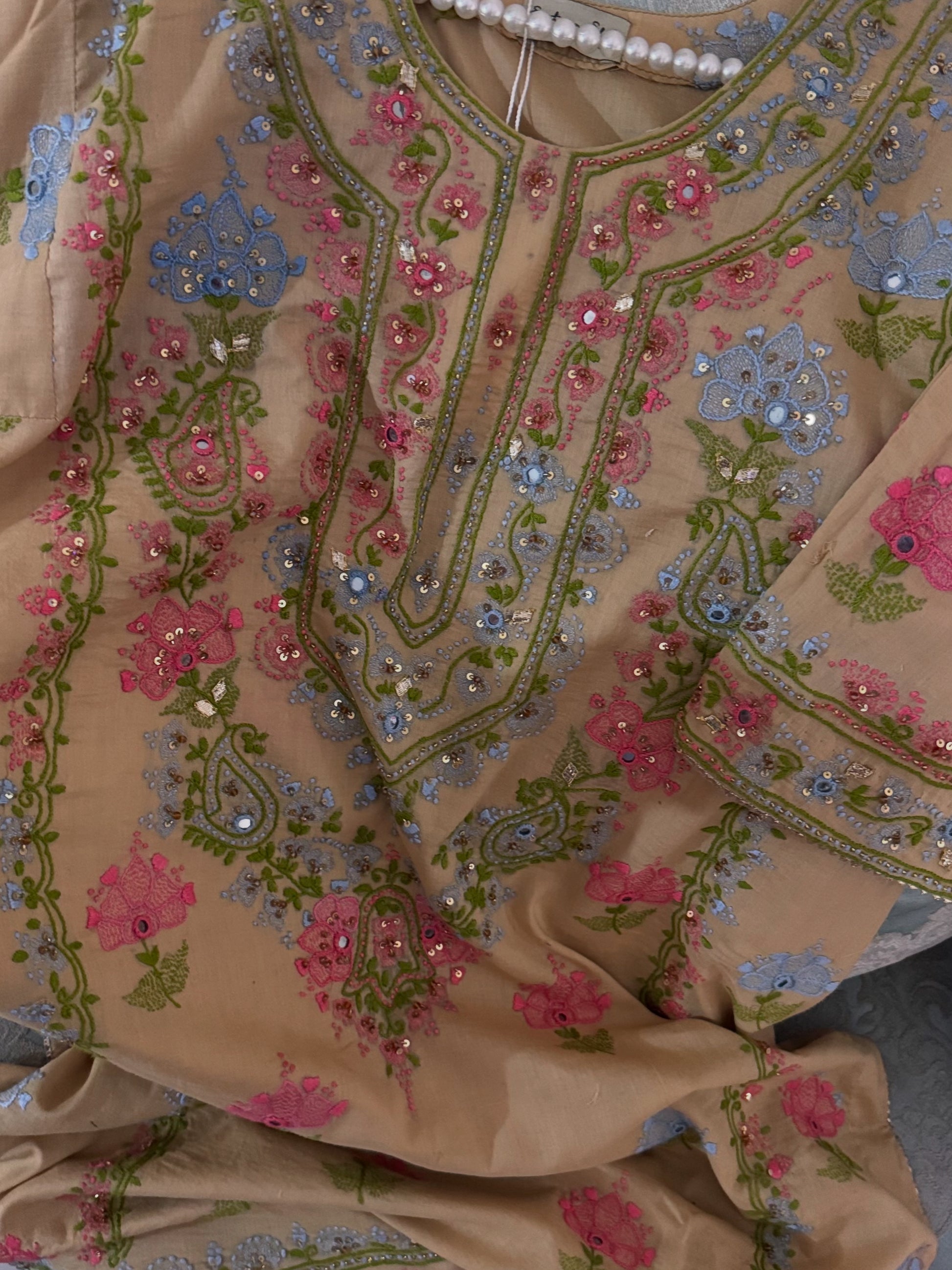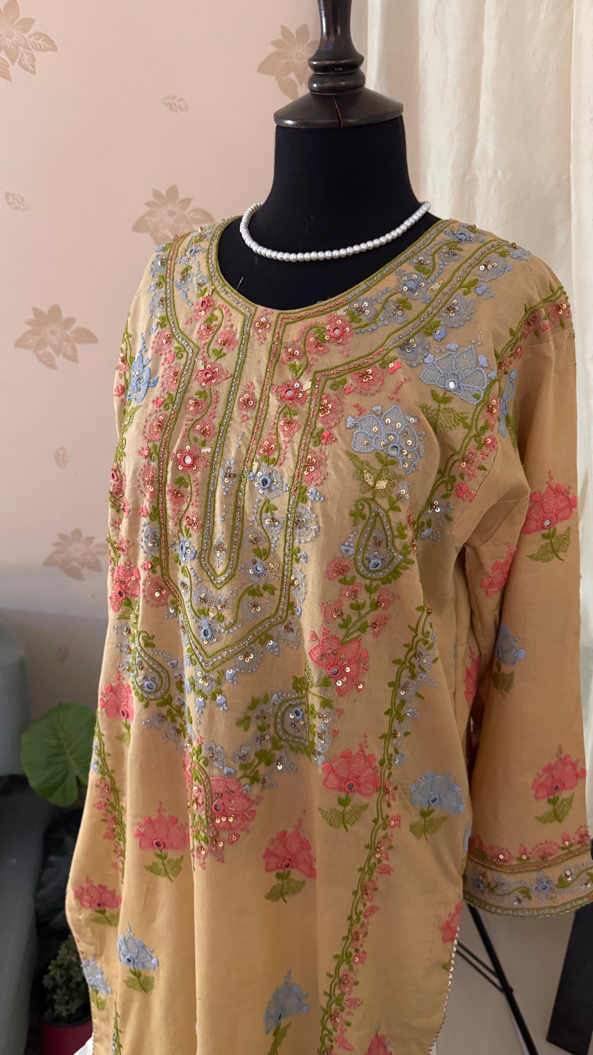 Hand Embroidered Kurta with goti, pearl, sitaara and sequence work.