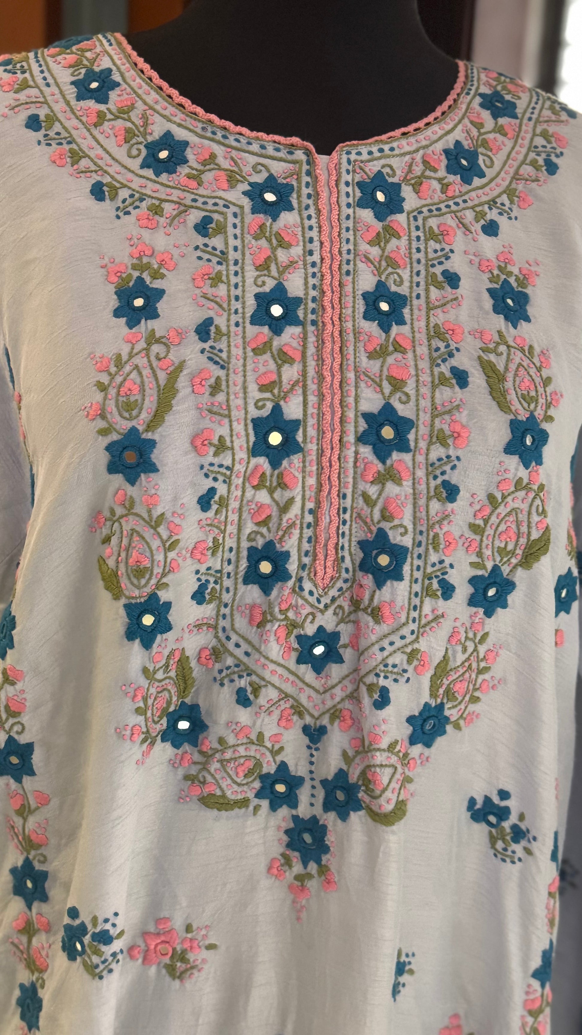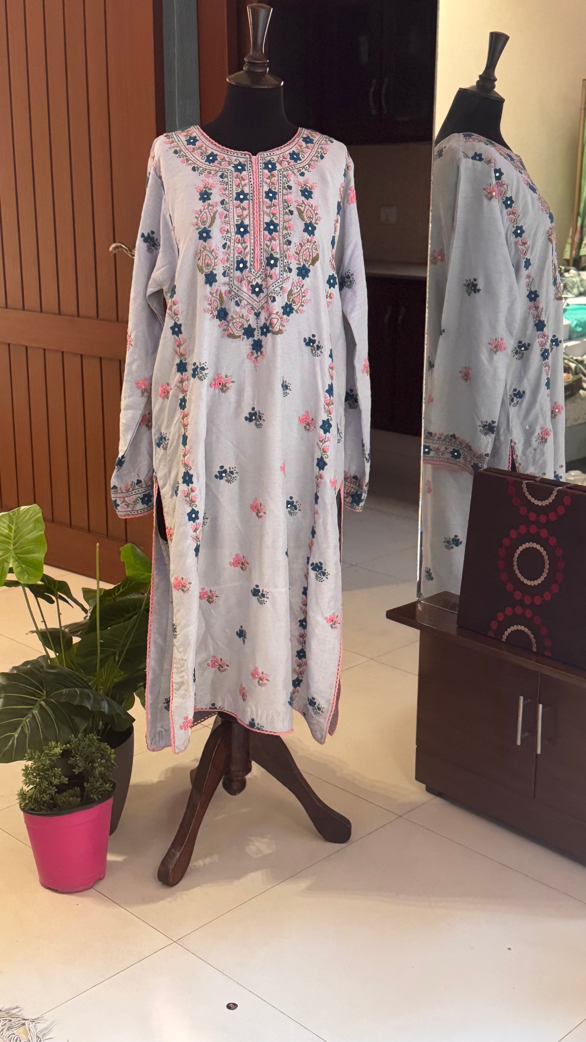 Made on imported raw silk (very high quality) and embroidered with pure anchor thread.